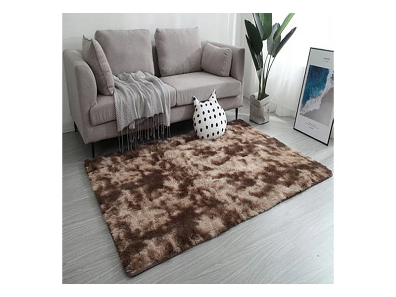 Tapis brun en peluche toute douce rabbit shaggy à poils longs 150x100 cm épais