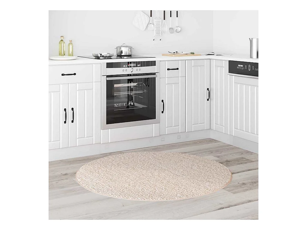 Tapis IZA poils courts style scandinave crème Ø 100 cm