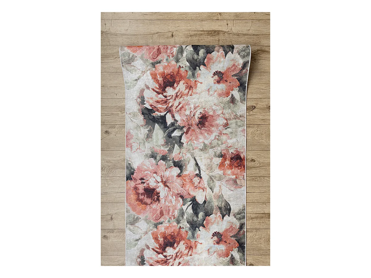 TAPIS DE COULOIR antidérapant LOTUS BOUQUET 52900 Fleurs beige / lava 100x510 cm