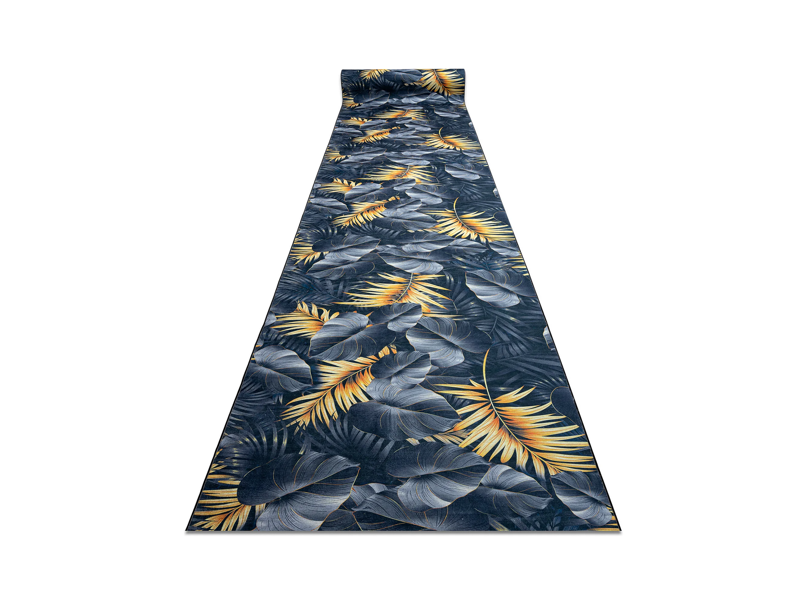 TAPIS DE COULOIR antidérapant LOTUS FERNS 45270 Feuilles gris / L'or 60x180 cm