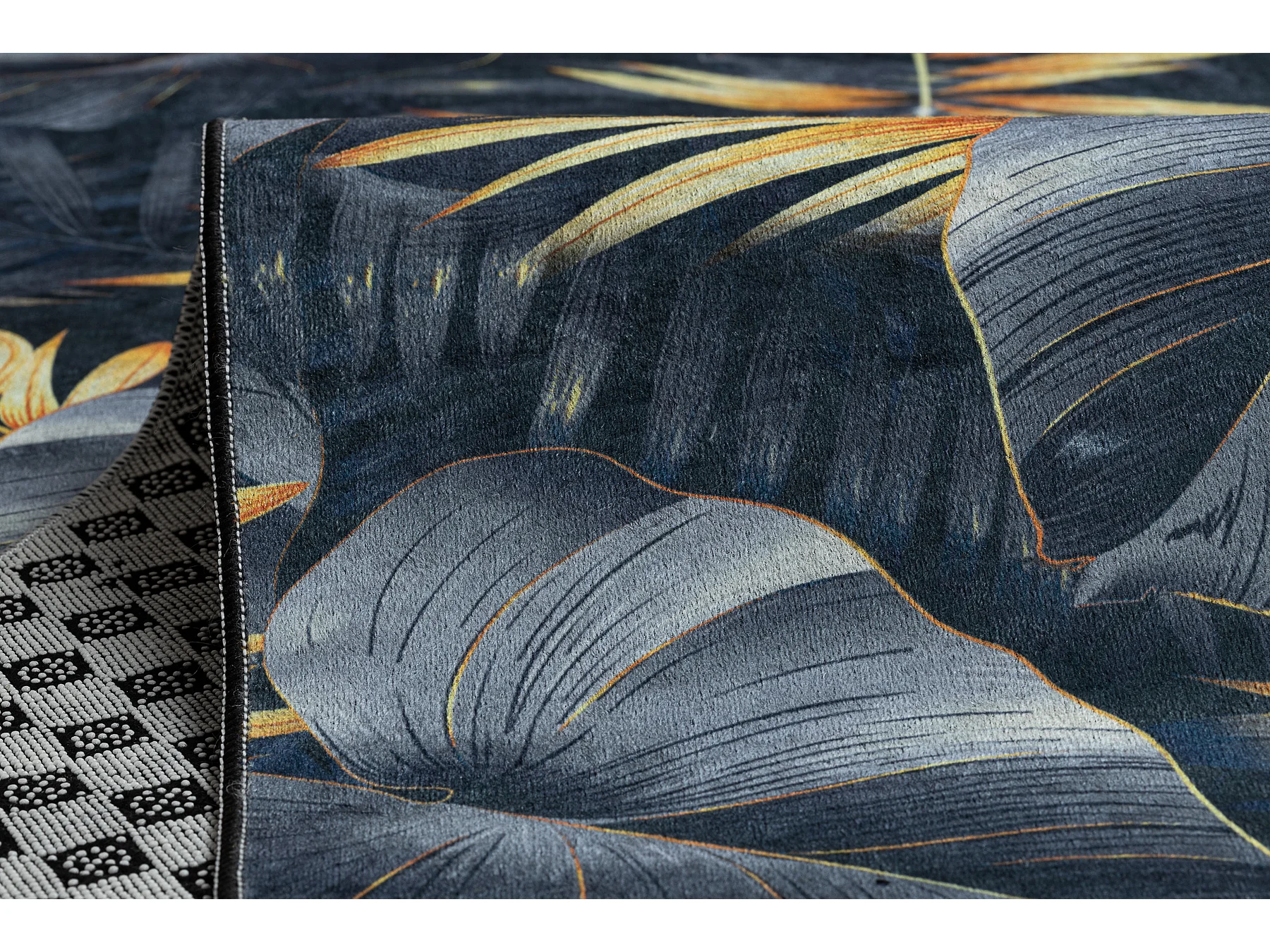 TAPIS DE COULOIR antidérapant LOTUS FERNS 45270 Feuilles gris / L'or 60x540 cm