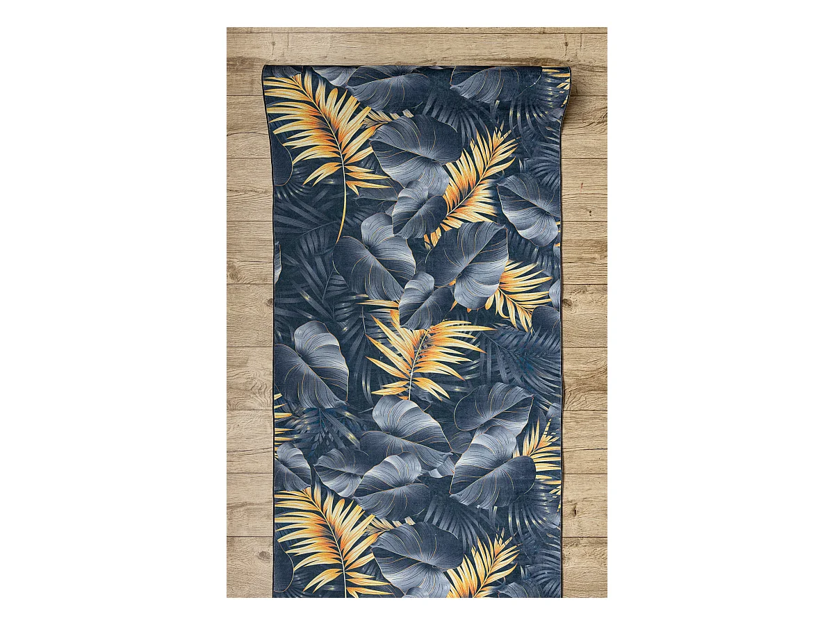 TAPIS DE COULOIR antidérapant LOTUS FERNS 45270 Feuilles gris / L'or 60x970 cm