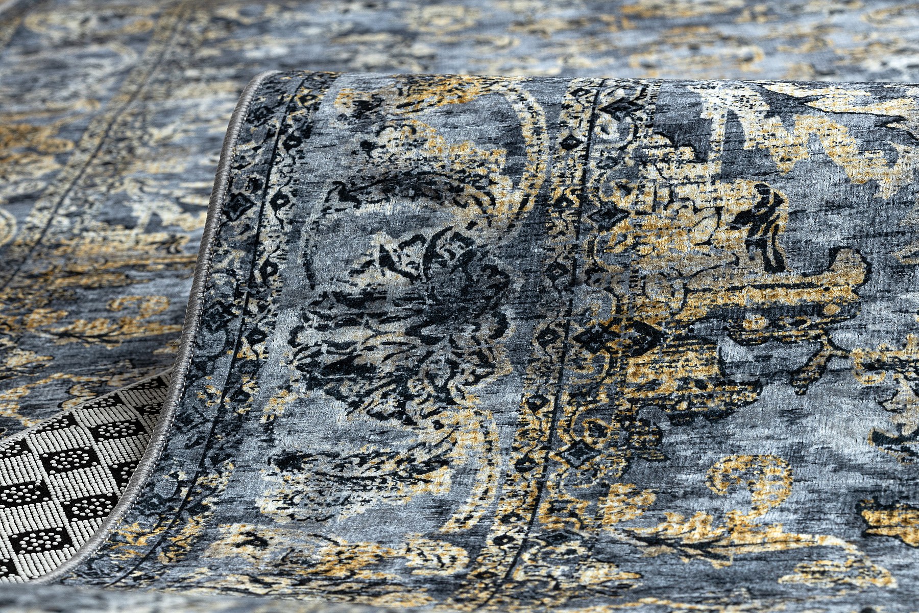 TAPIS DE COULOIR antidérapant LOTUS NOMAD 29671 Ornement gris lavable 80x850 cm