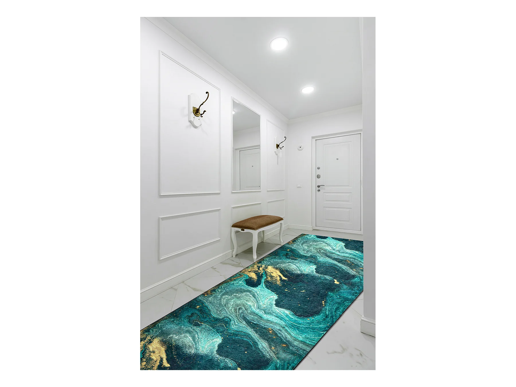 TAPIS DE COULOIR antidérapant LOTUS SHADOWS 37750 Abstraction vert / 100x760 cm