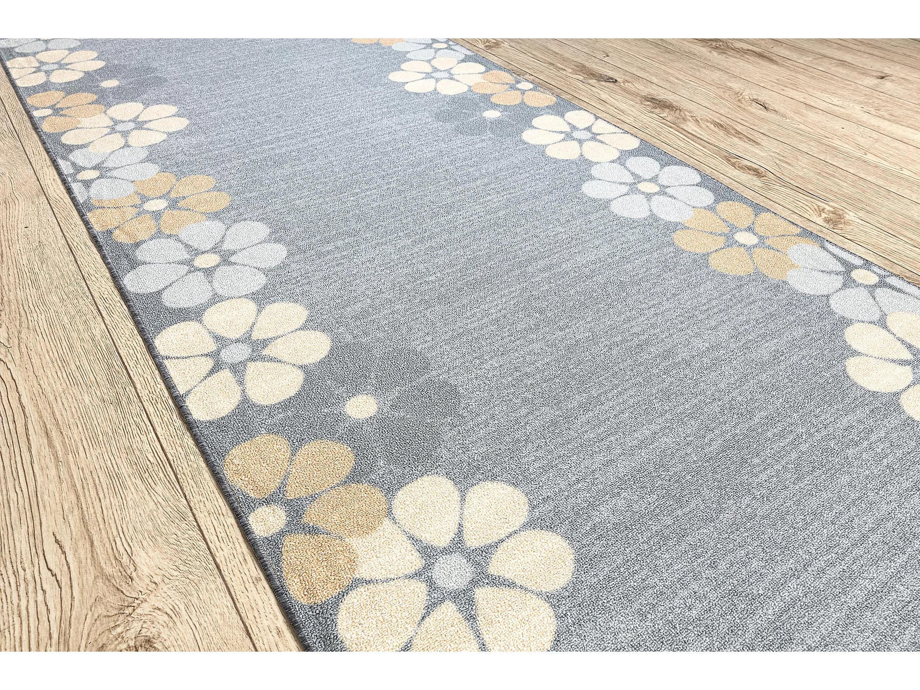 TAPIS DE COULOIR antidérapant MARGARETKA, fleur la gomme gris 100x570 cm