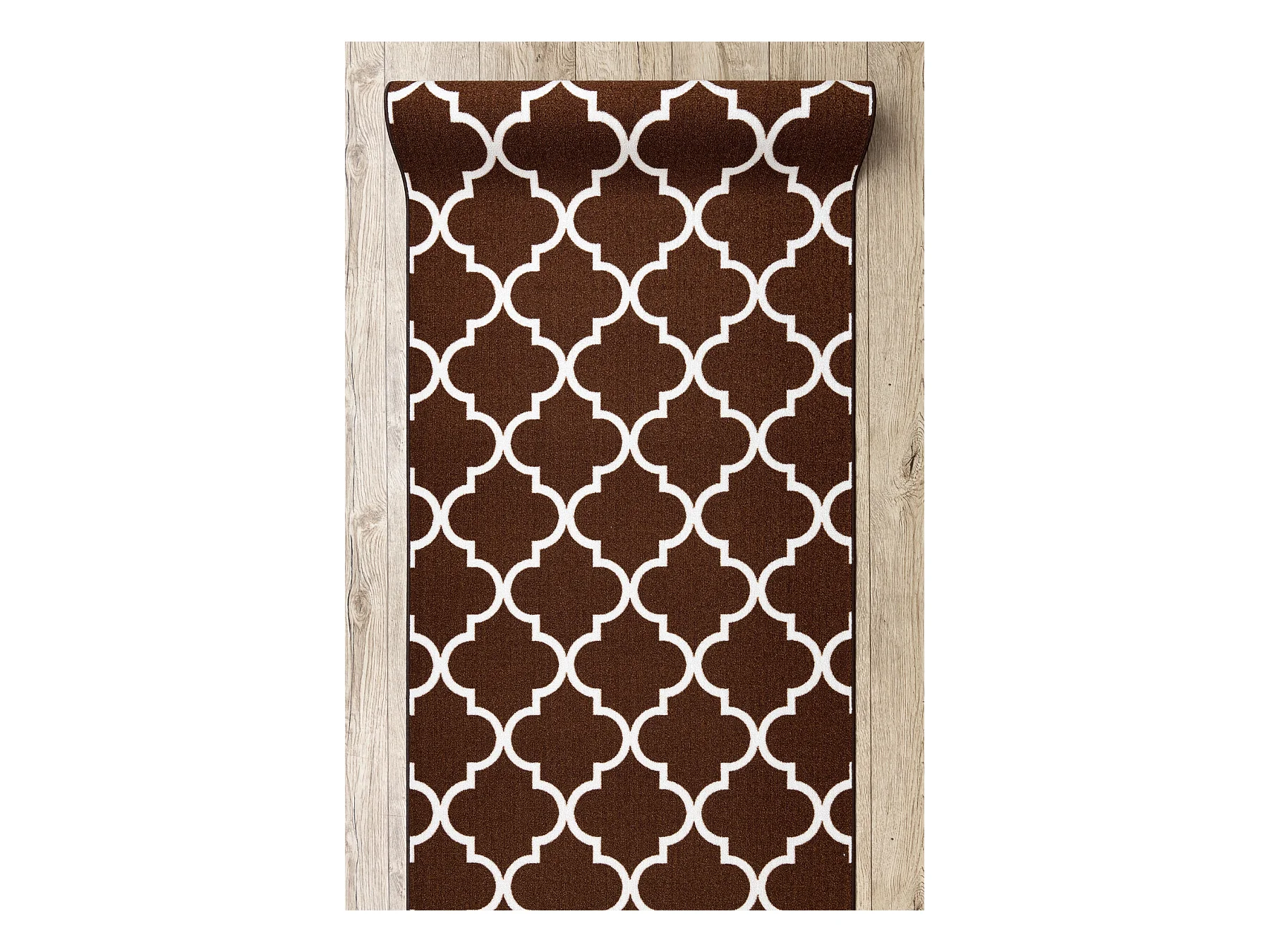 TAPIS DE COULOIR ANTIDÉRAPANT TRÈFLE MAROCAIN marron TRELLIS 30351 90x970 cm