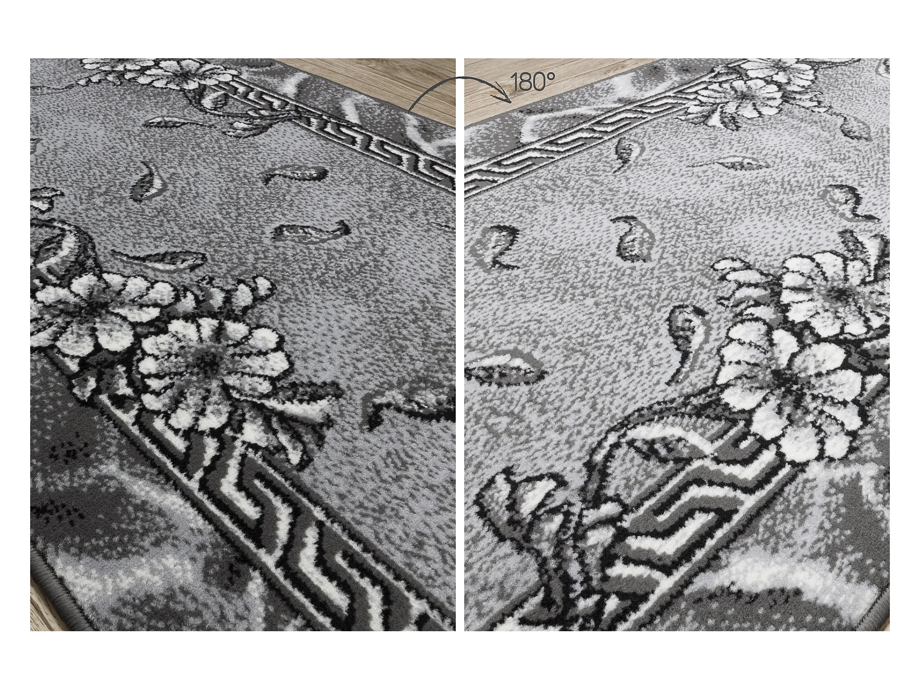 TAPIS DE COULOIR BCF MORAD Trio fleurs, feuilles gris 70x810 cm