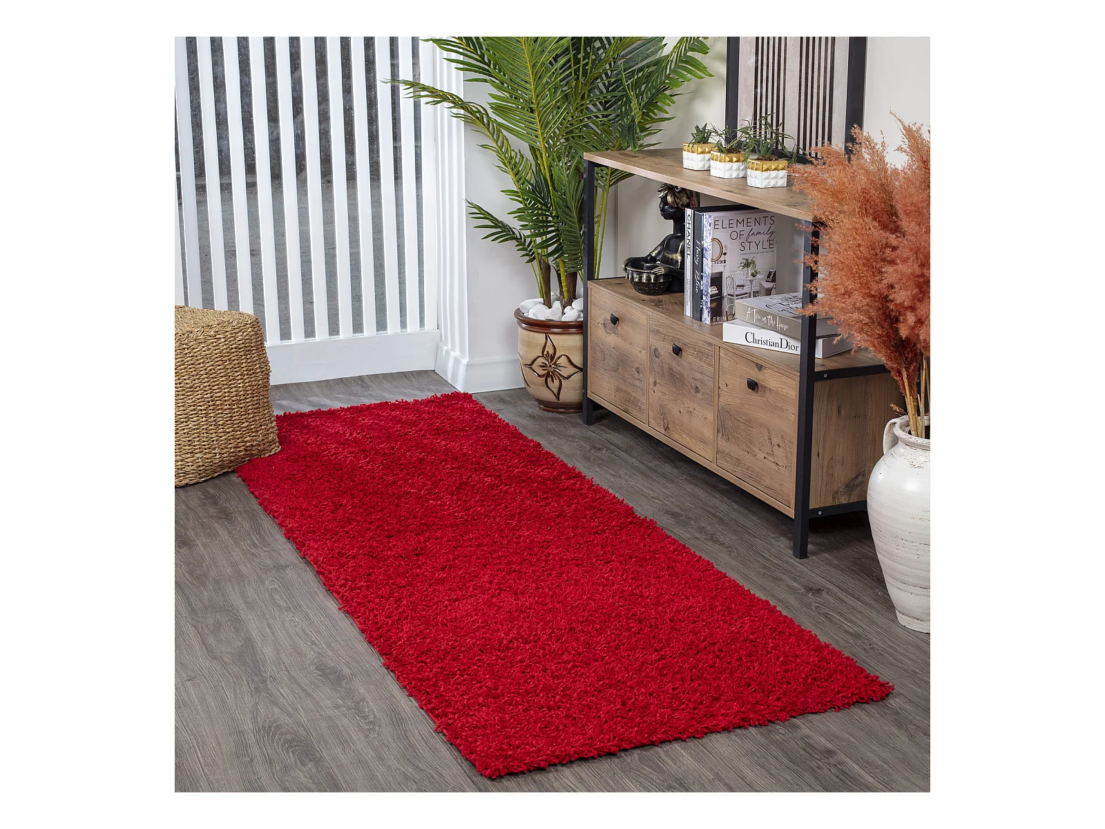 Tapis de Couloir Shaggy Uni - Rouge - 80x220cm - LILLY