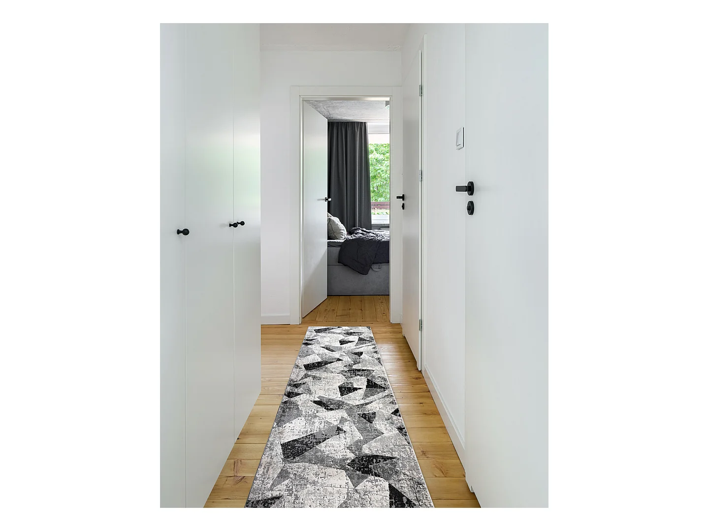 Tapis de couloir TULS 51211 moderne, Géométrique anthracite 80x910 cm