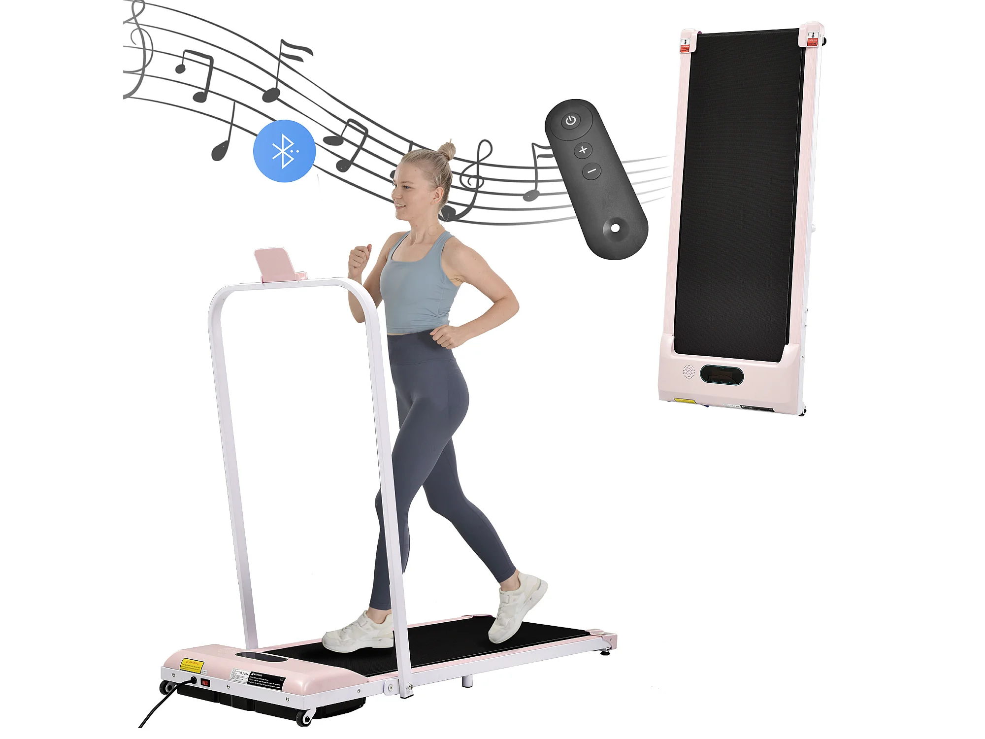 Tapis de Course 119.5x54x105 cm avec LED d'une télécommande et d'un haut-parleur Bluetooth rose pour salon et le bureau