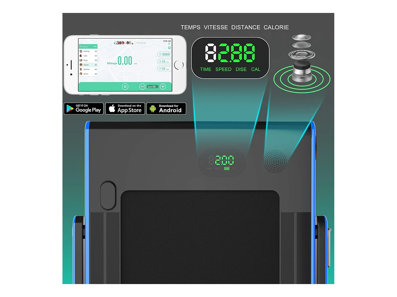 Tapis de Course Electrique Pliable 2 en 1 Contrôlé par APP 12 Km/H avec Ecran LED Haut-parleur Bluetooth Moteur 0,75HP