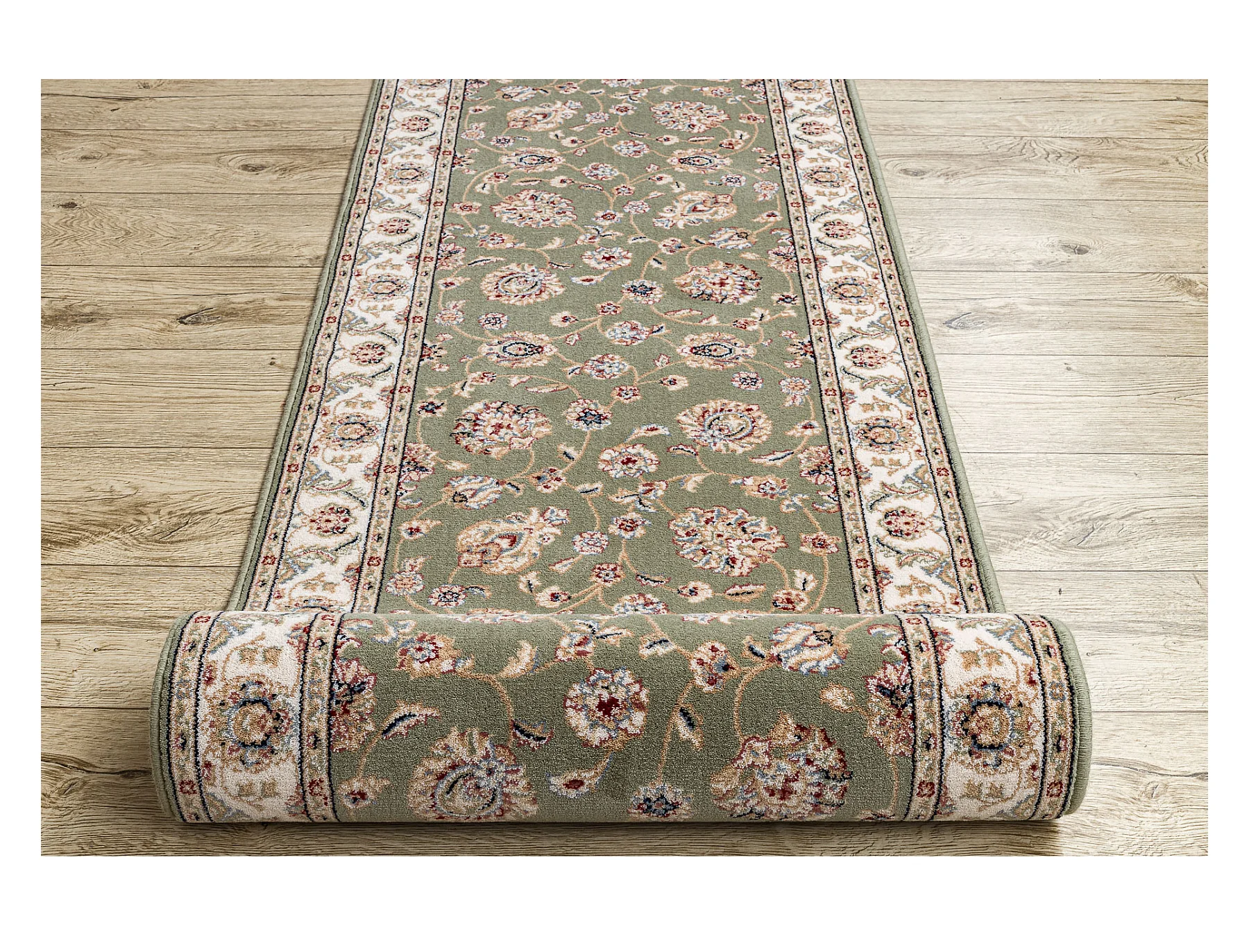 Tapis de course en laine NAIN Fleurs 7338 51088 vert / beige 100x800 cm