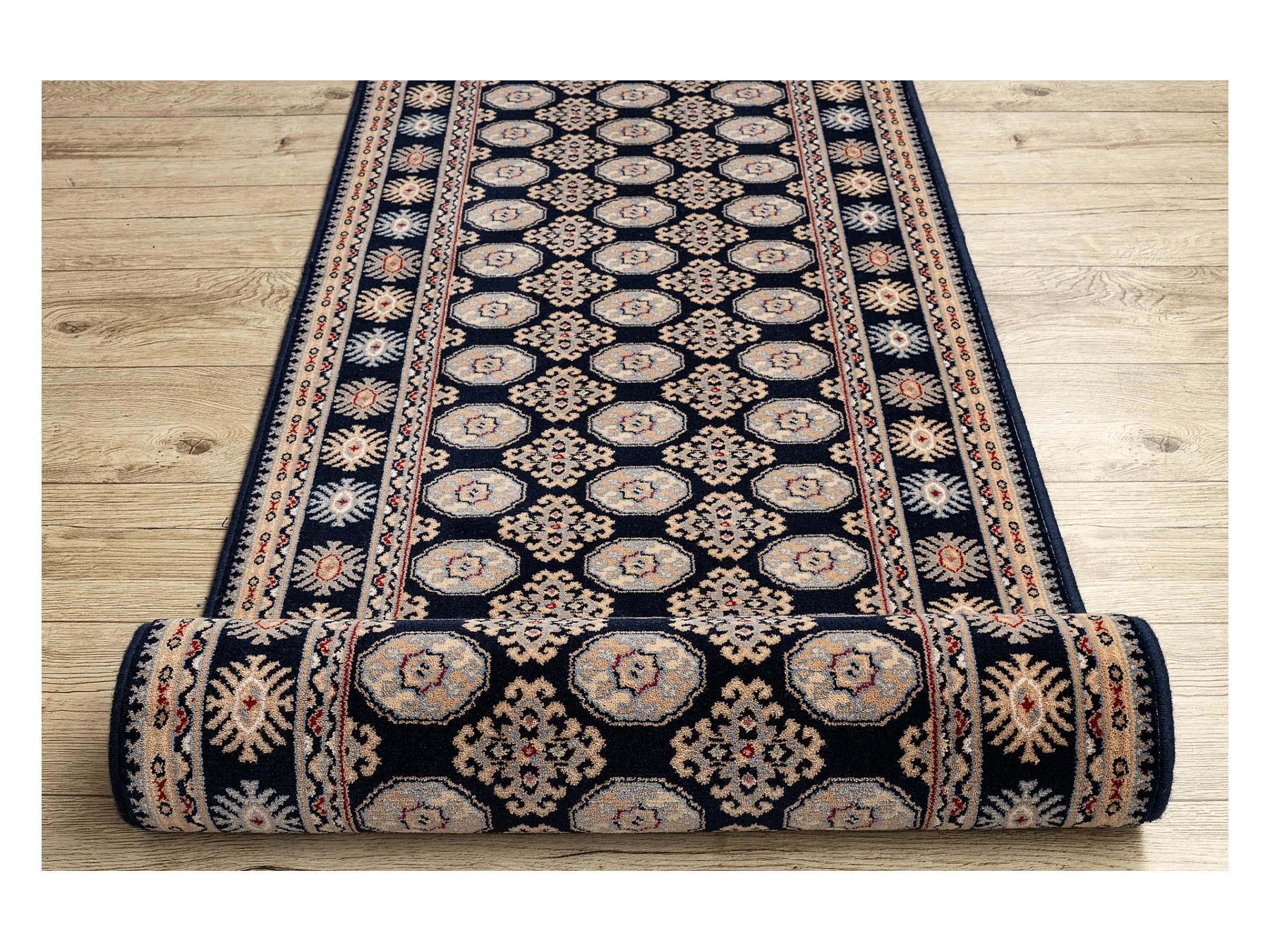 Tapis de course en laine NAIN Rosette 6177 51011 bleu foncé / beige 100x900 cm