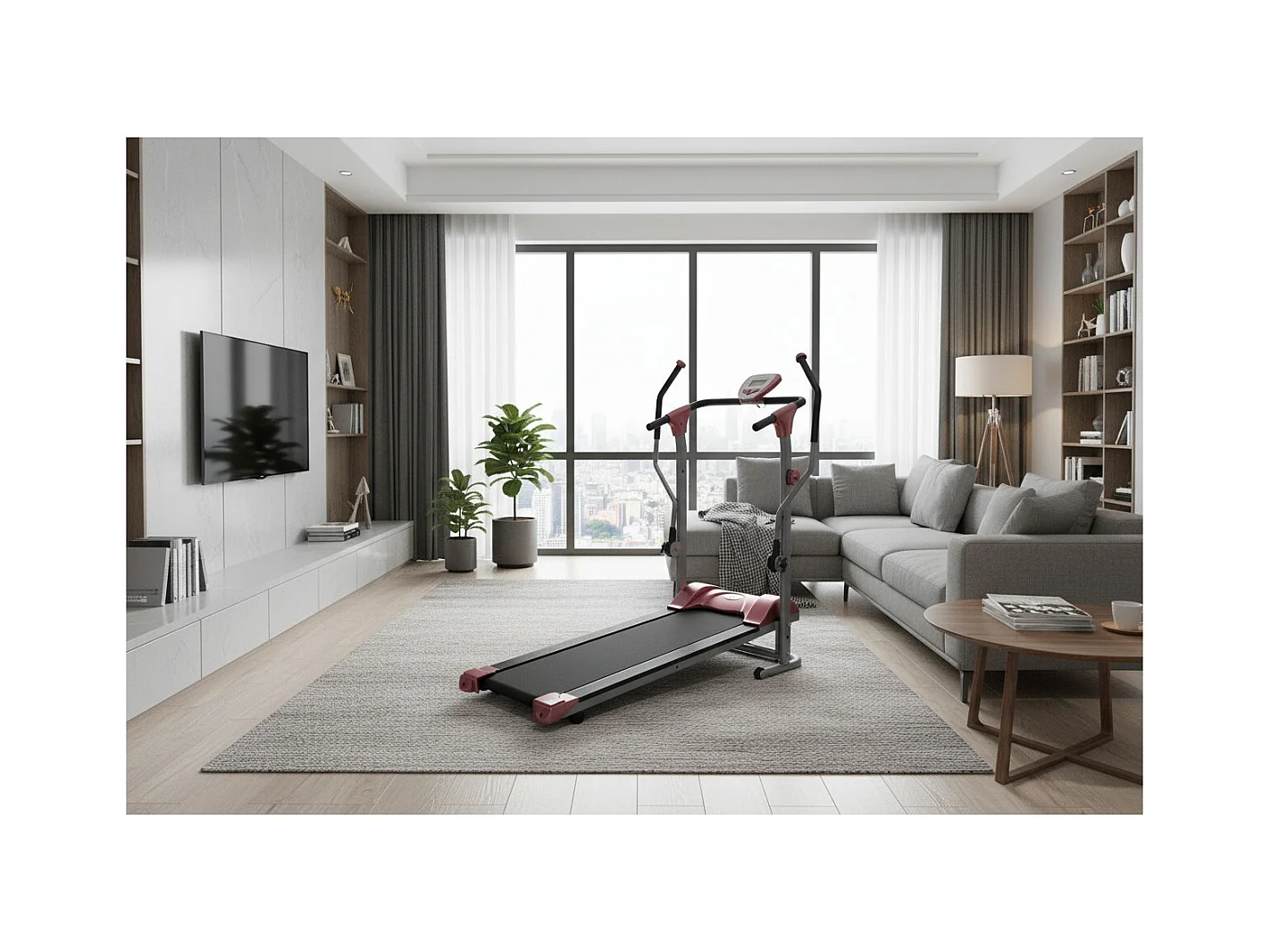 Tapis de course magnétique avec bras 2 en 1 - O'Fitness - Maison/Appartement - Compteur 5 fonctions