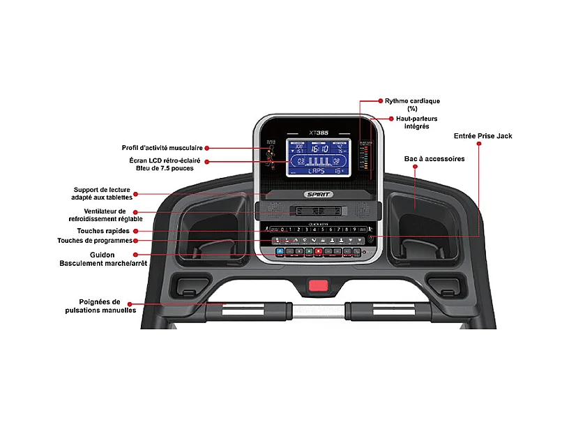 Tapis de course Motorisé 19 KM/H XT385 - Spirit Fitness