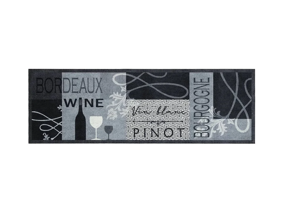 Tapis de cuisine lavable imprimé Wine gris 60x180 cm velours