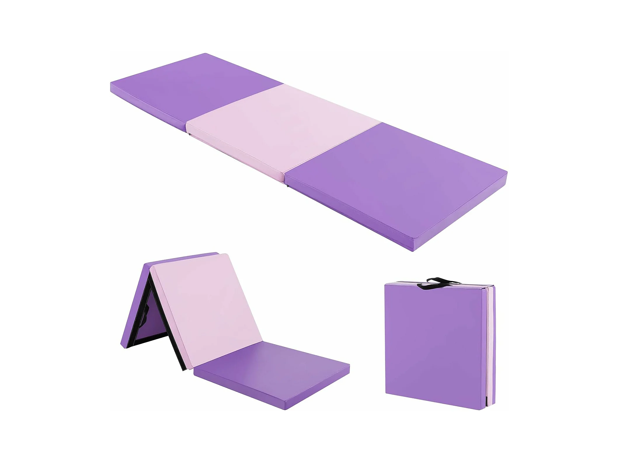 Tapis de Gymnastique Pliable Epais, Matelas d'Entrainement en Mousse et PU avec Poignées, pour Gymnastes Entraînements Sportifs Yoga, 180x60x5CM (Violet et Rose)