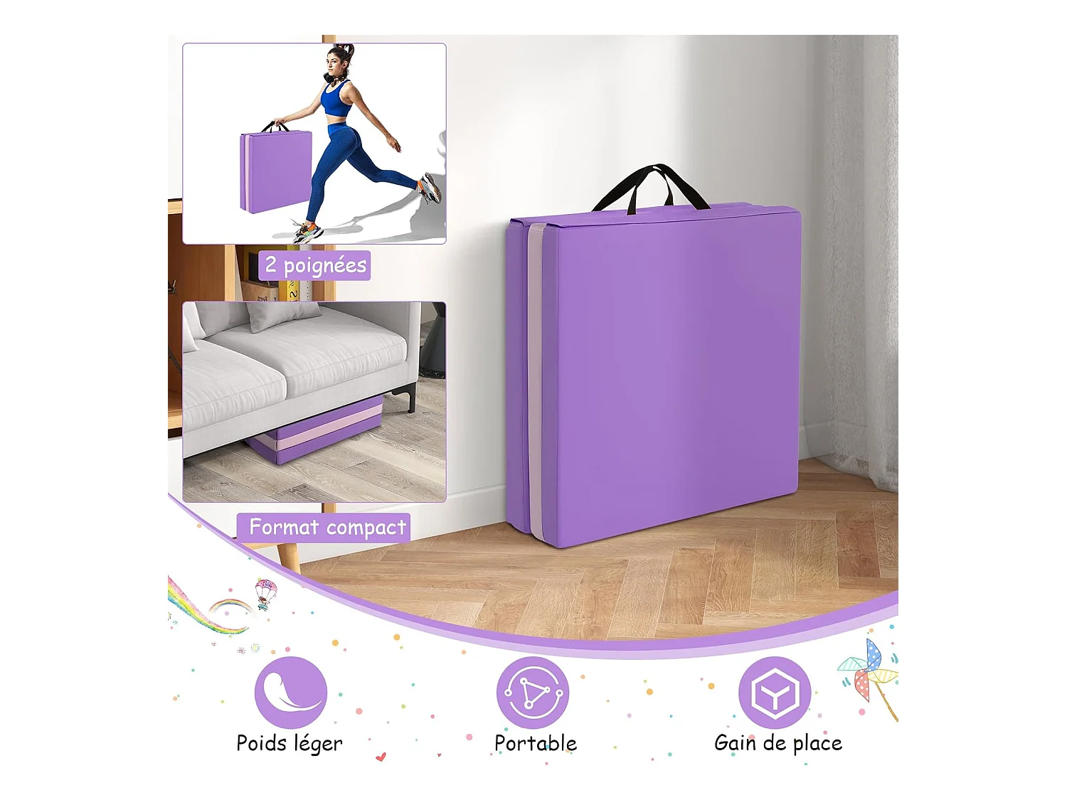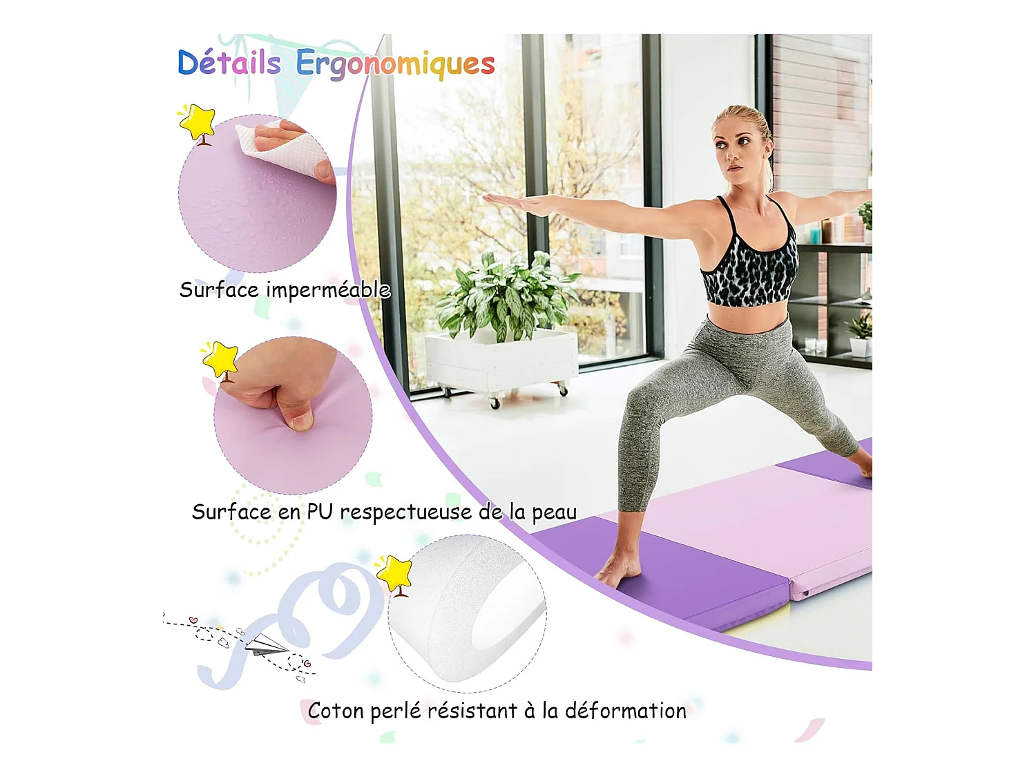 Tapis de Gymnastique Pliable Epais 240x117x5CM, Matelas d'Entrainement en Mousse et PU avec Poignées, pour Gymnastes Entraînements Sportifs Yoga (Rose et violet)