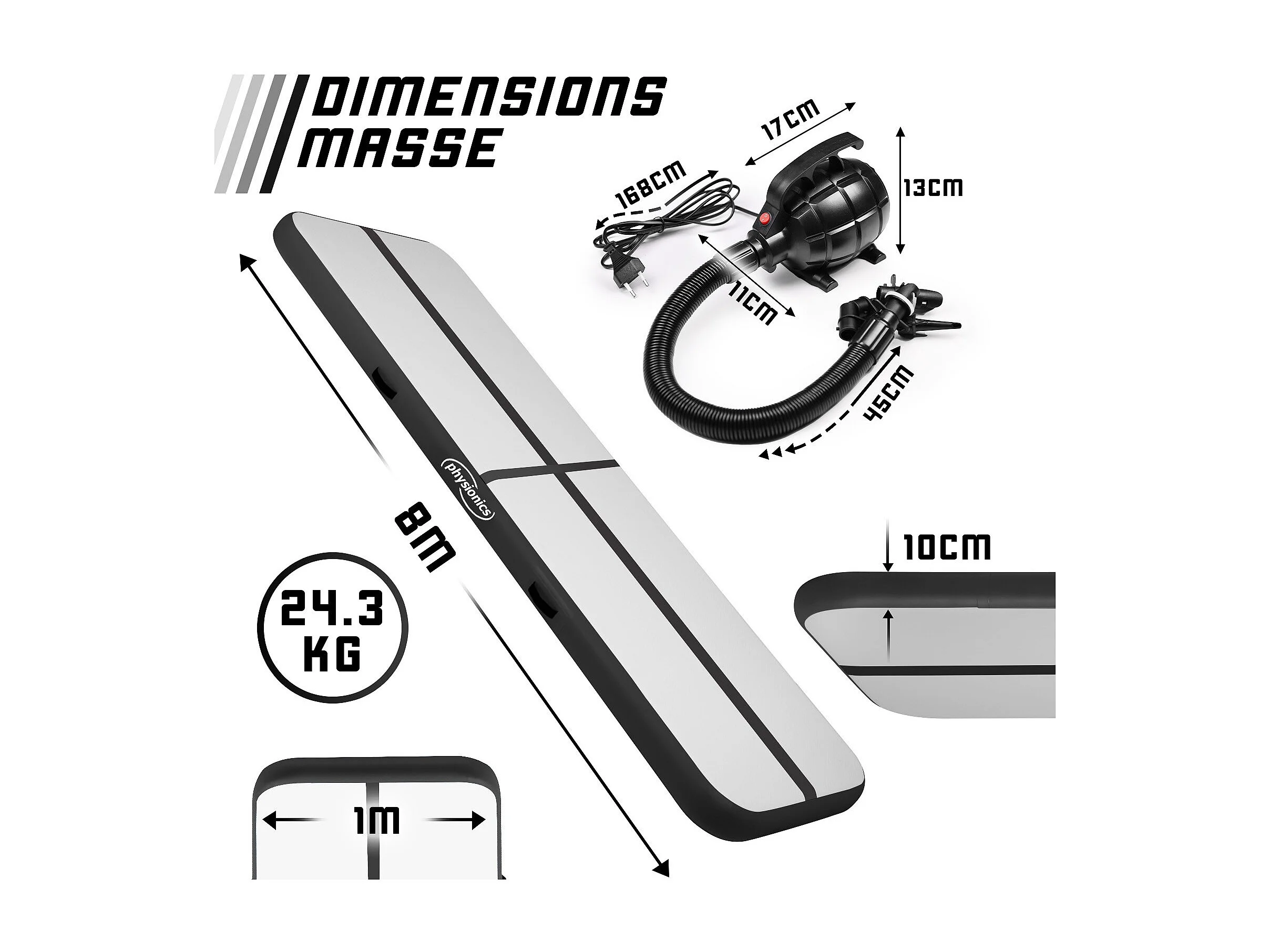 Tapis de gymnastique / Tapis de yoga - 800 x 100 x 10 cm - avec pompe électrique - noir