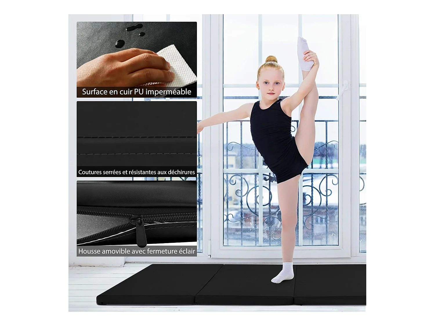 Tapis de Yoga SucceBuy, Tapis d'Exercice Antidérapant, 1,2 X 1,8 m, pour Hommes et Femmes, Noir