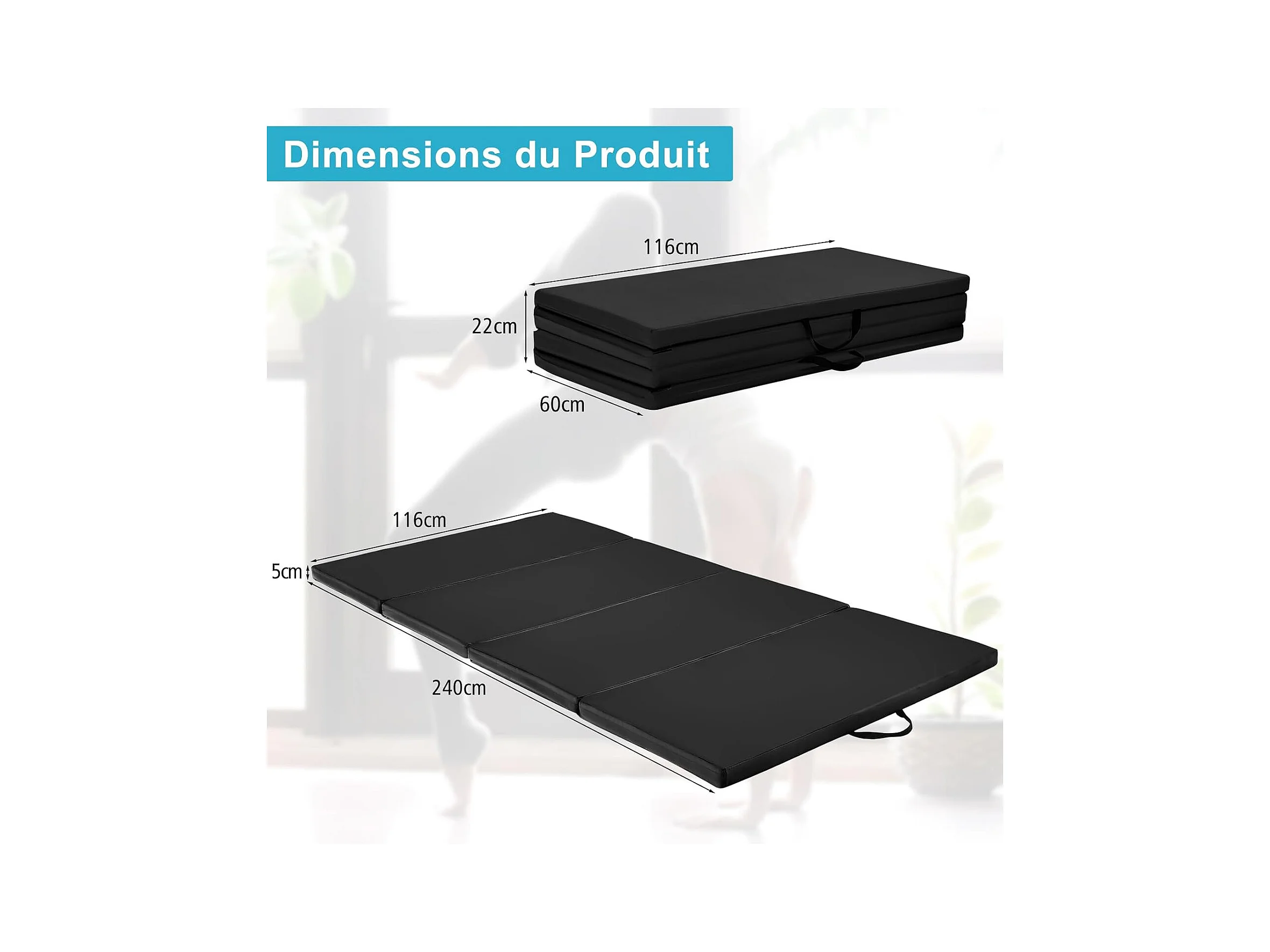 Tapis de Gymnastique Tapis de Yoga Pliant Tapis Musculation Matelas Gymnastique Pliant Portable Tapis d'Entrainement 180x60x4CM