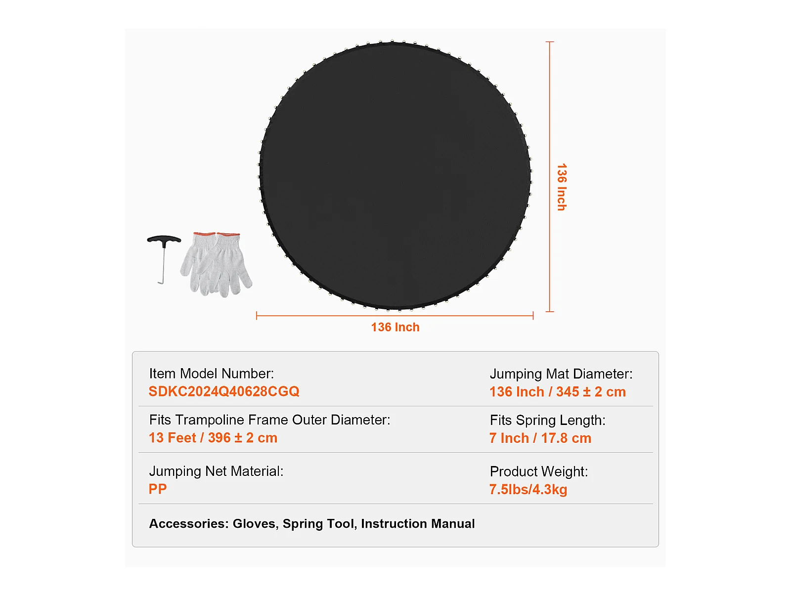 Tapis de Remplacement pour Trampoline SucceBuy, Cadre de 427 cm, 72 Anneaux en V, Ressort de 14 cm, Résistant aux UV, Durable