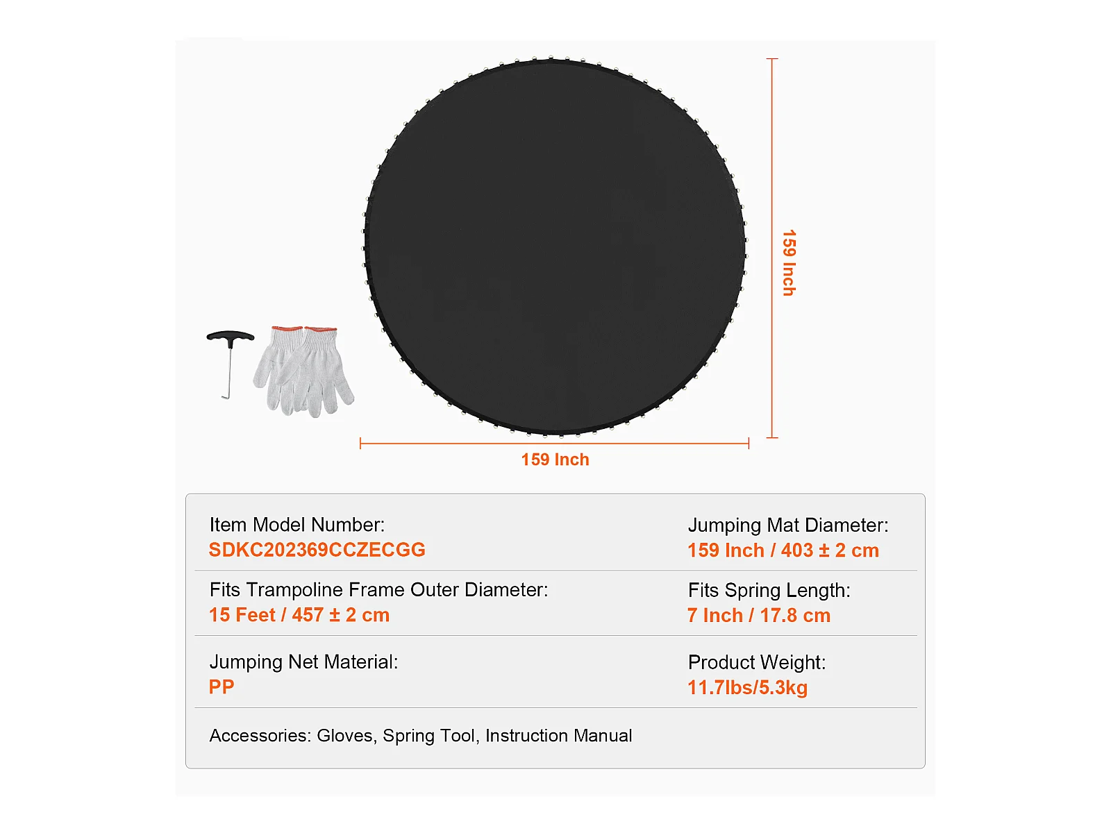 Tapis de Remplacement pour Trampoline SucceBuy, Cadre de 457 cm, 96 Anneaux en V, Ressort de 18 cm, Résistant aux UV, Durable