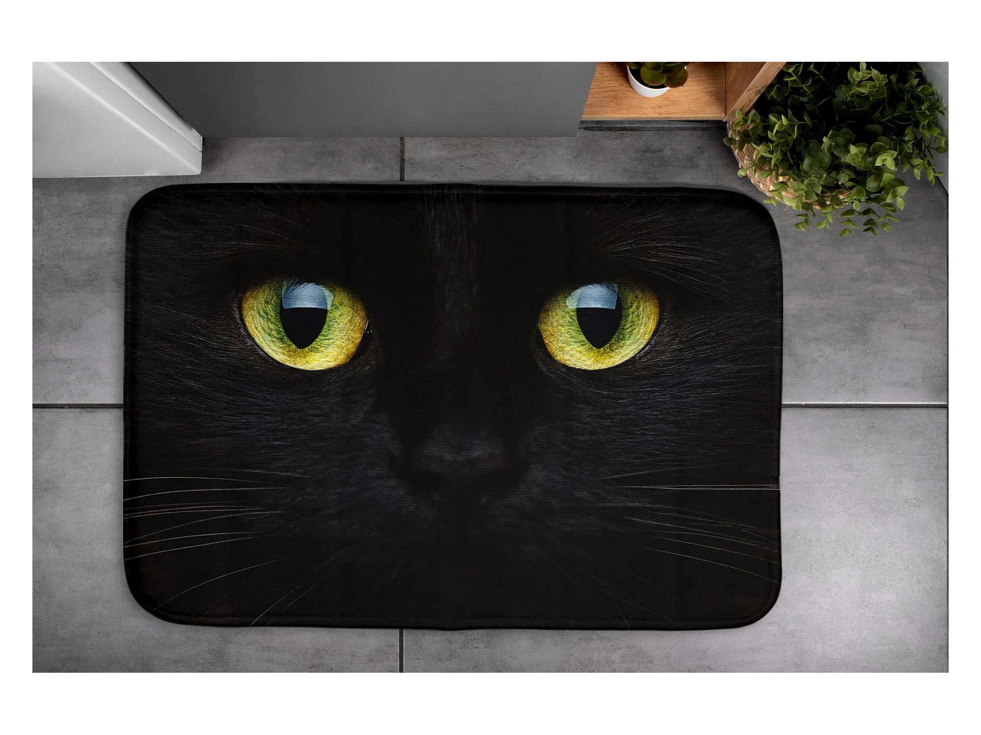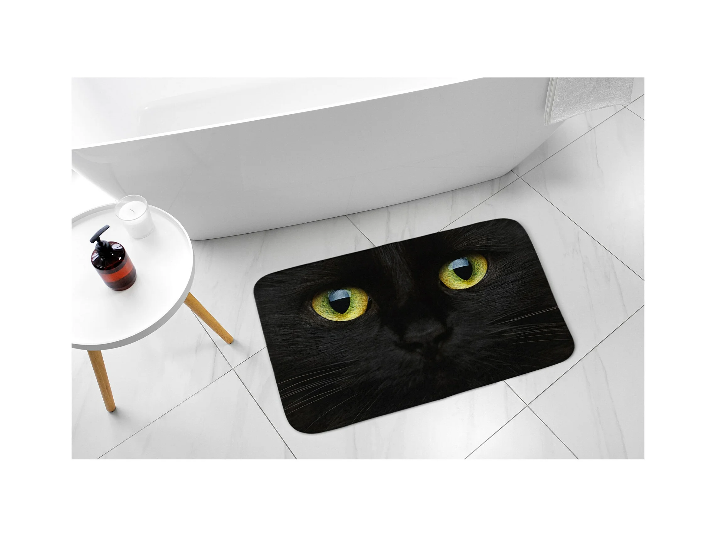 Tapis de salle de bain moderne 75x45 cm - Tapis de salle de bain confortable Chat noir mignon