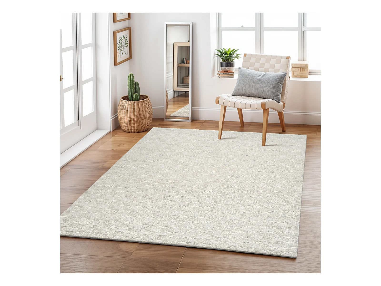 Tapis Scandinave à Carreaux - Ivoire - 200x275cm - IRINA