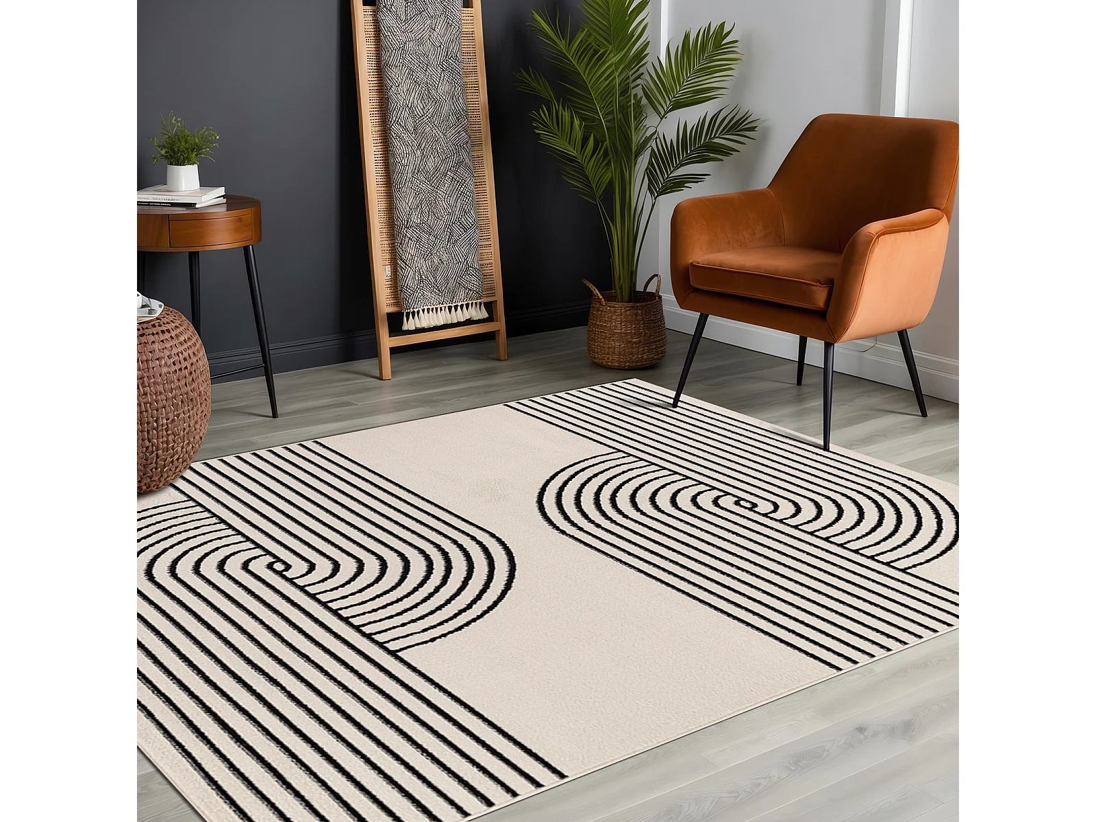 Tapis Scandinave Moderne - Blanc/Noir - 200x275cm - CONSTANCE