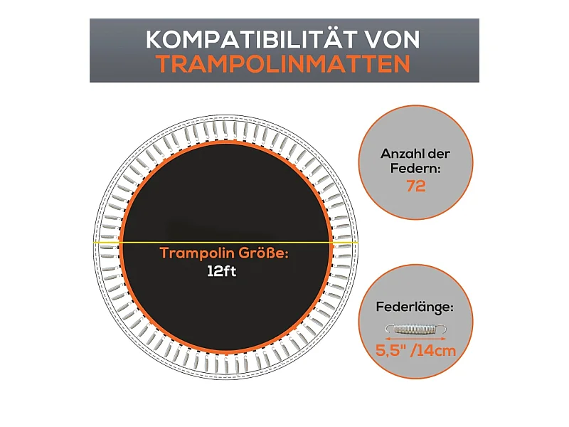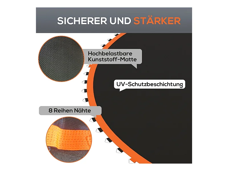Tapis de trampoline rond, résistant aux intempéries, polypropylène, orange, avec 72 anneaux en V (323x323x1 cm)
