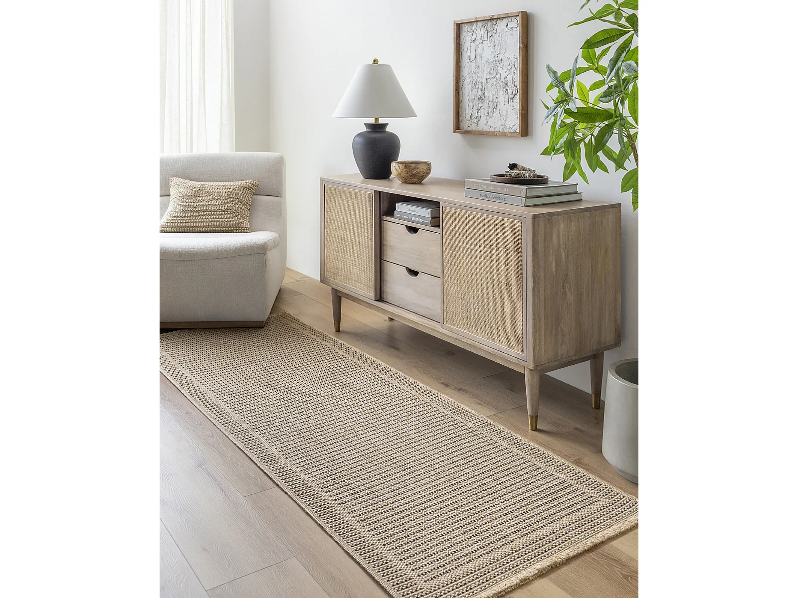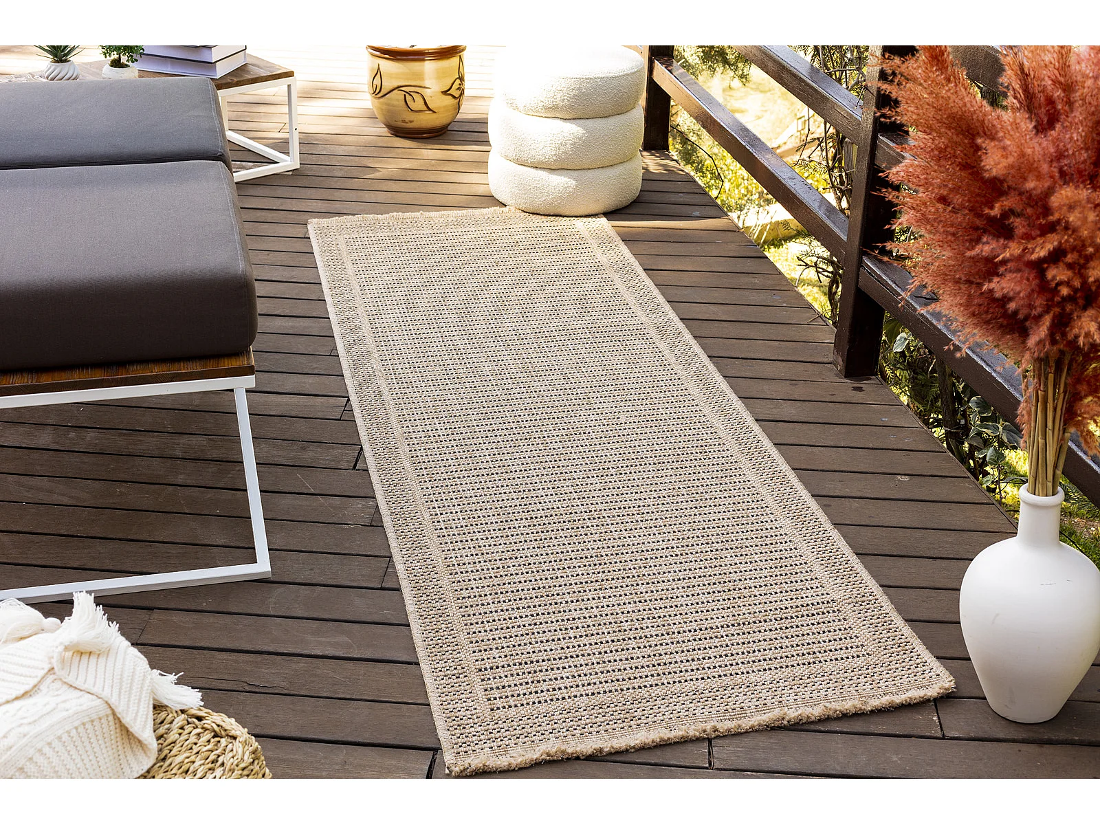 Tapis d'Extérieur/Intérieur Aspect Jute - Beige/Noir - 80x220cm - MINDY
