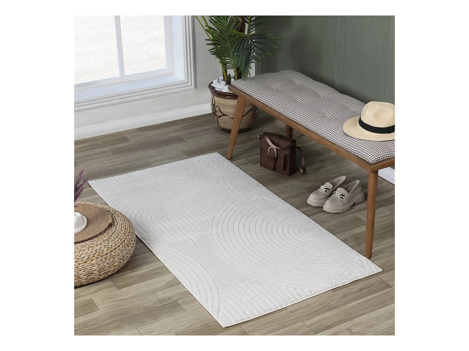 Tapis d'Intérieur/Extérieur Scandinave Moderne - Blanc - 80x150cm - REYKO