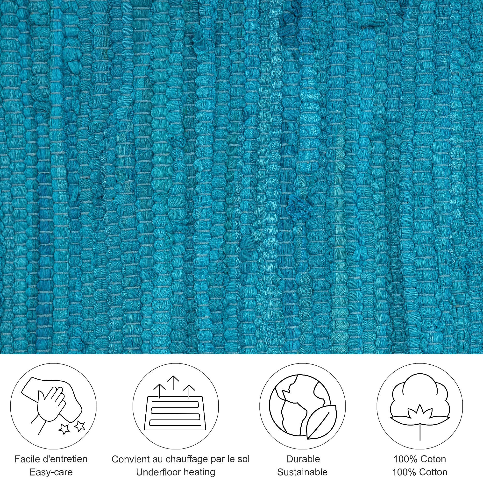 Tapis en coton tissé à la main et réversible 60x120 cm turquoise Happy Cotton