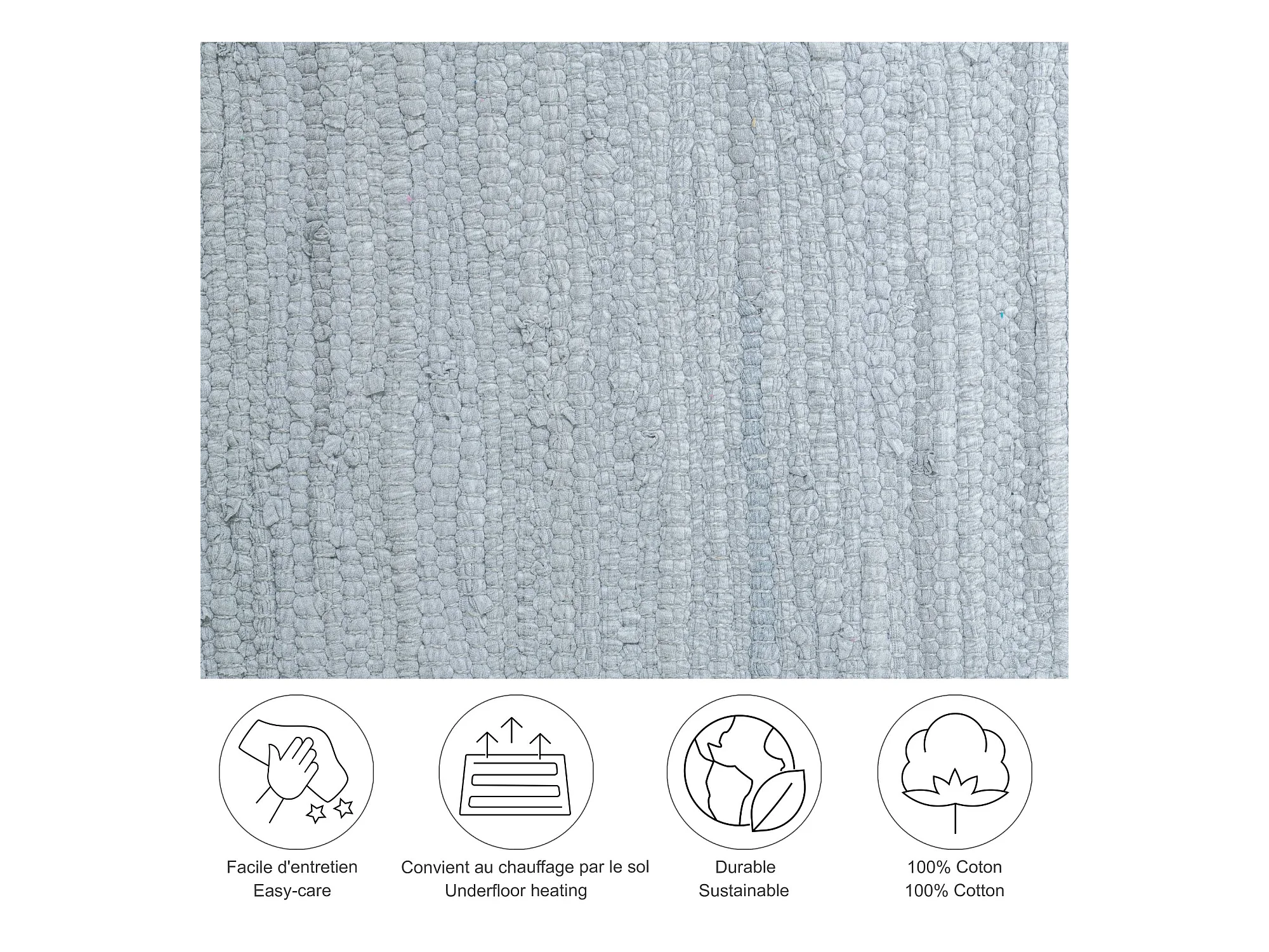 Tapis en coton tissé à la main et réversible 120x180 cm gris Happy Cotton
