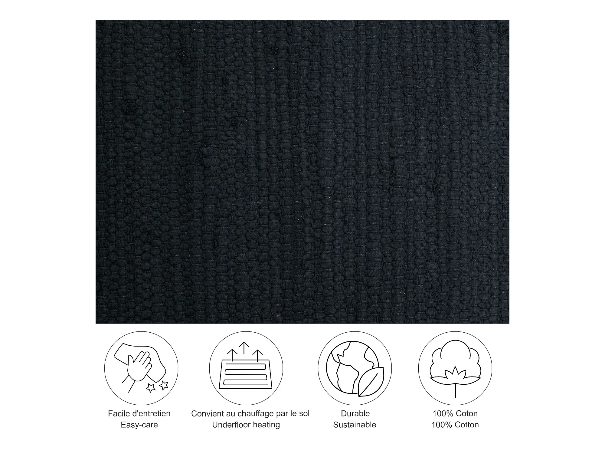 Tapis en coton tissé à la main et réversible 90x160 cm noir Happy Cotton