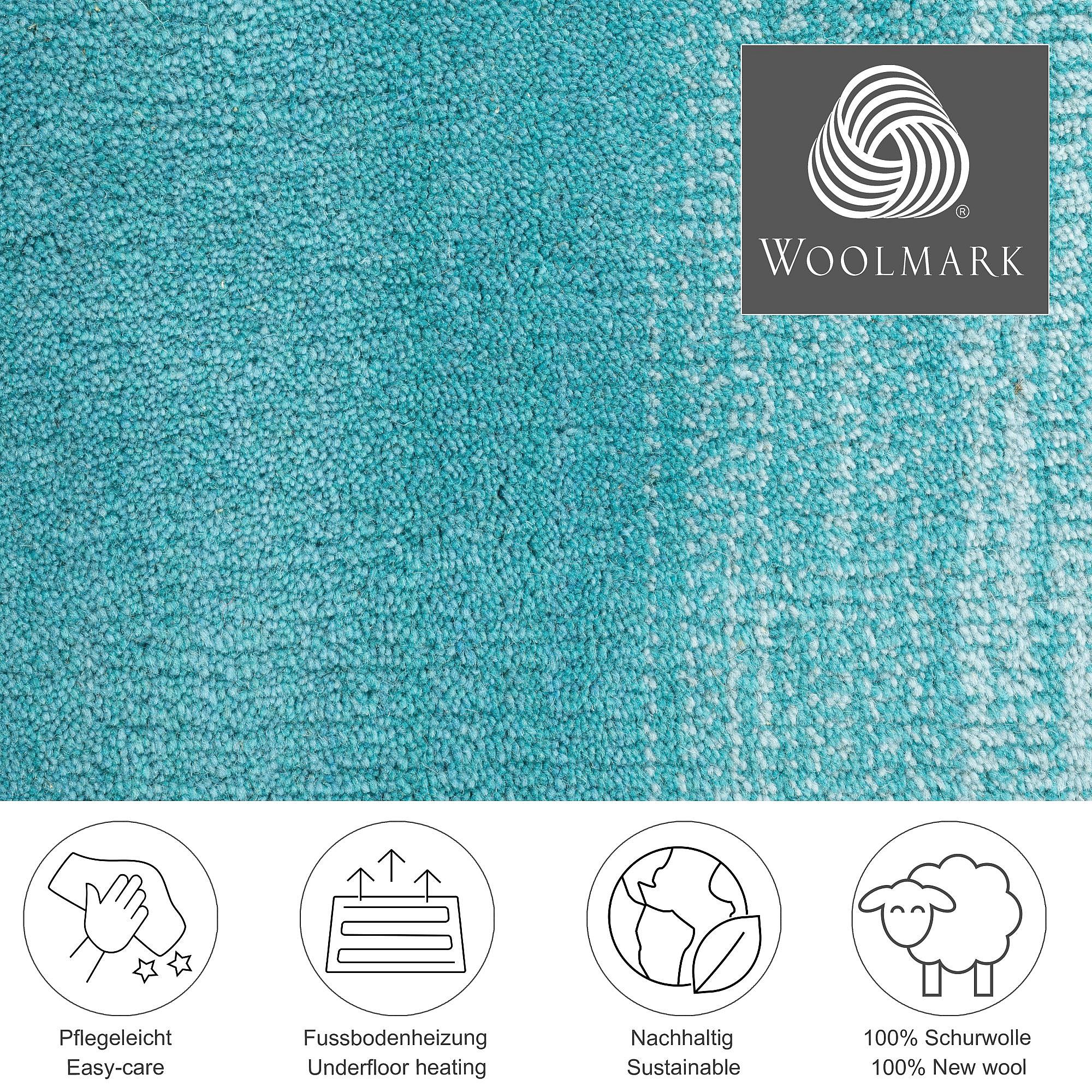 Tapis en laine avec dégradé de couleurs 190x290 cm turquoise Wool Comfort