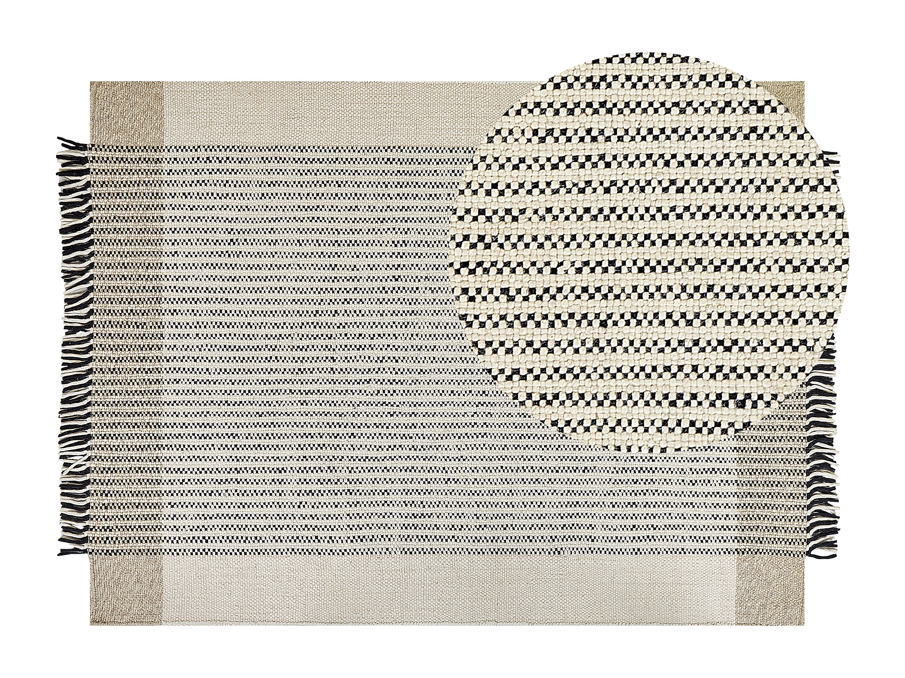 Tapis rectangulaire rayé en laine et jute tissé à plat 160 x 230 cm