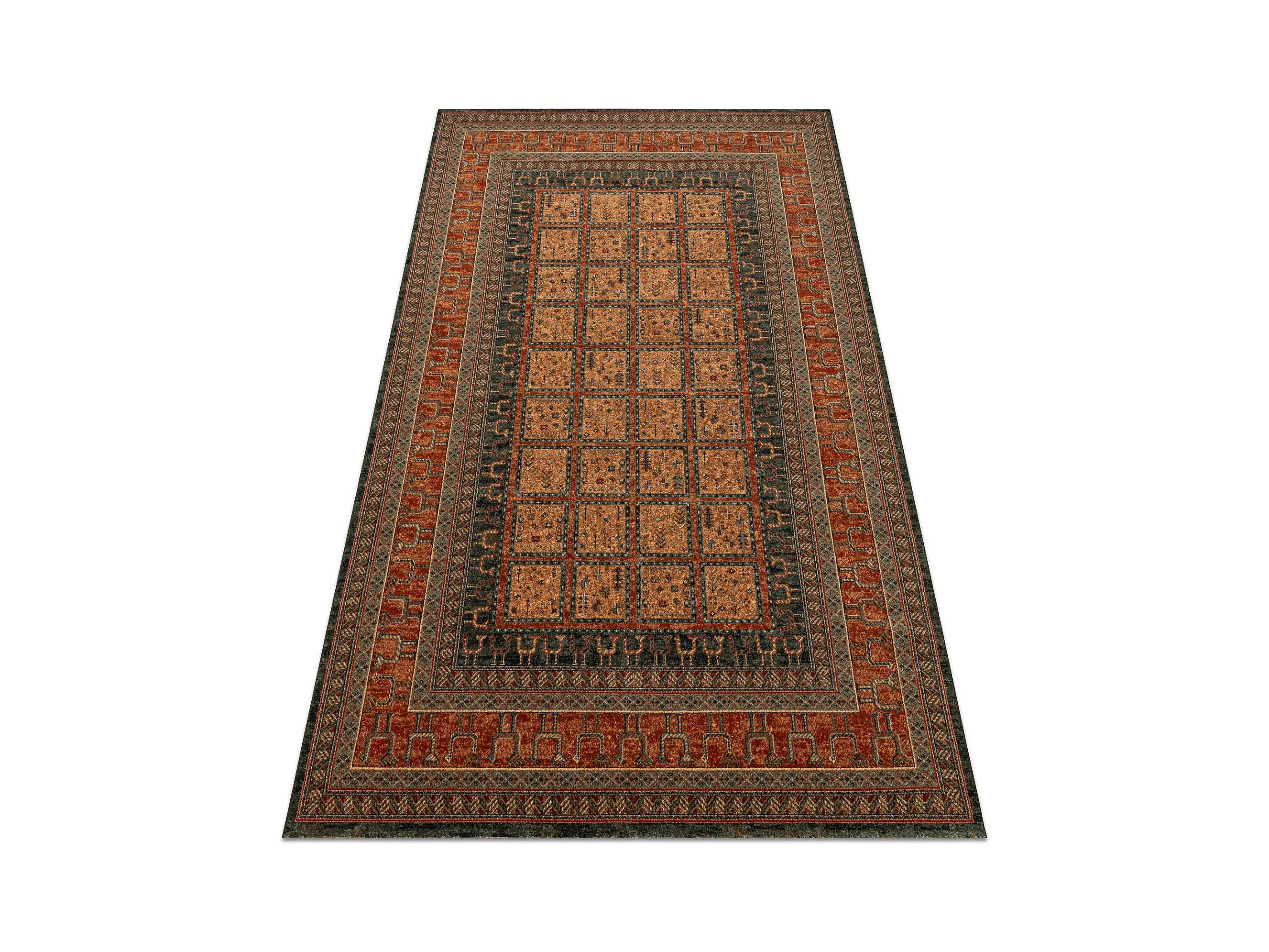 Tapis en laine KASHQAI 4301 300 oriental, cadre terre cuite / vert 80x160 cm