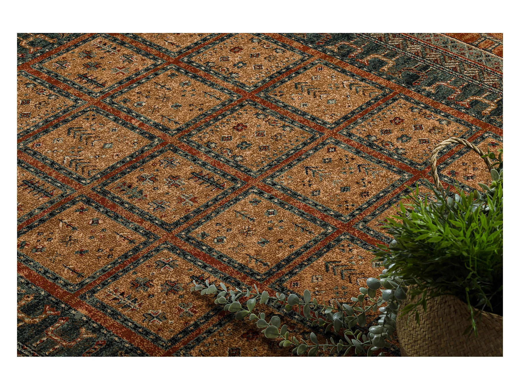 Tapis en laine KASHQAI 4349 300 oriental, cadre terre cuite / vert 80x160 cm
