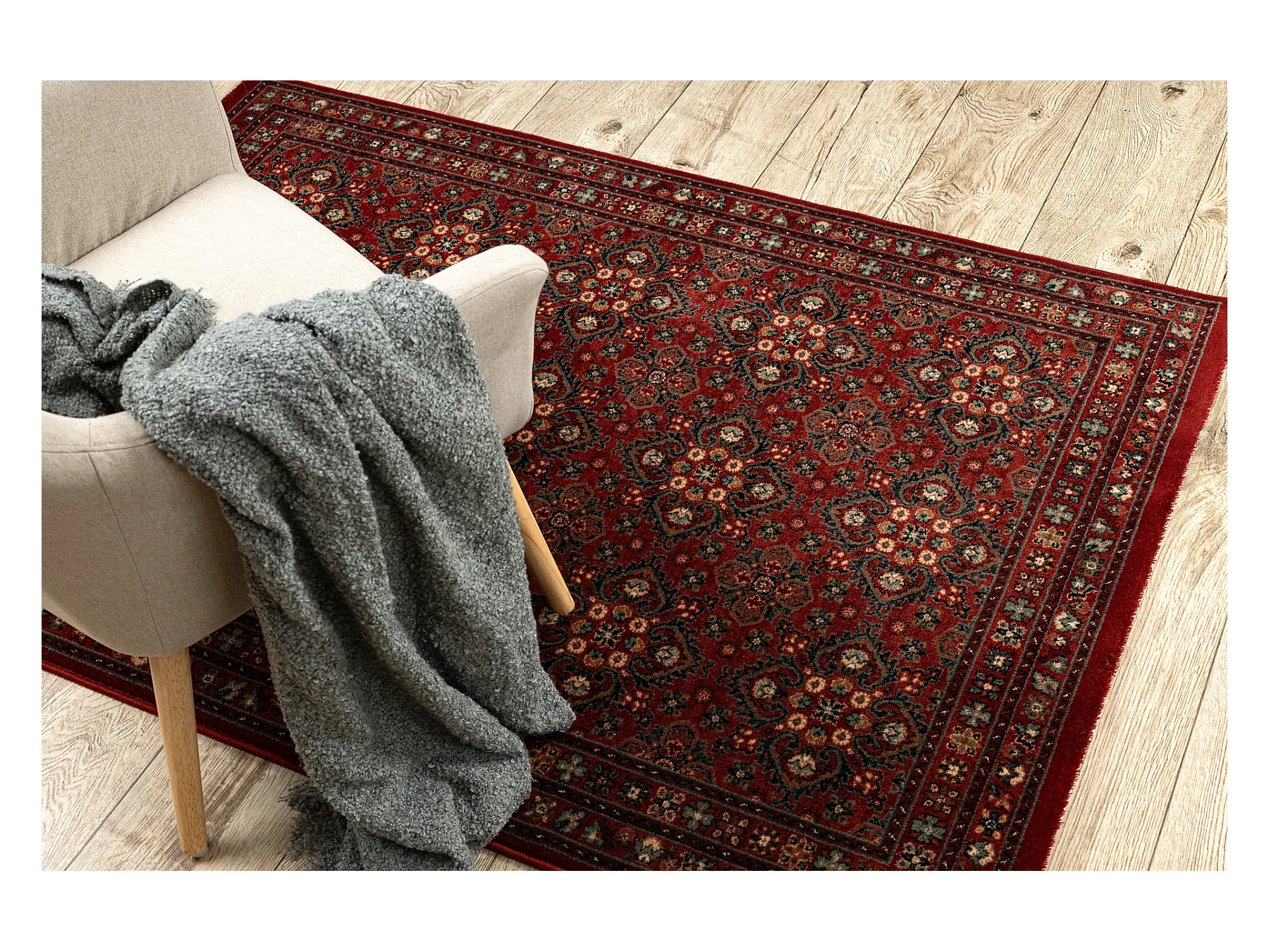 Tapis en laine KASHQAI 4302 300 Fleurs, cadre bordeaux 80x160 cm