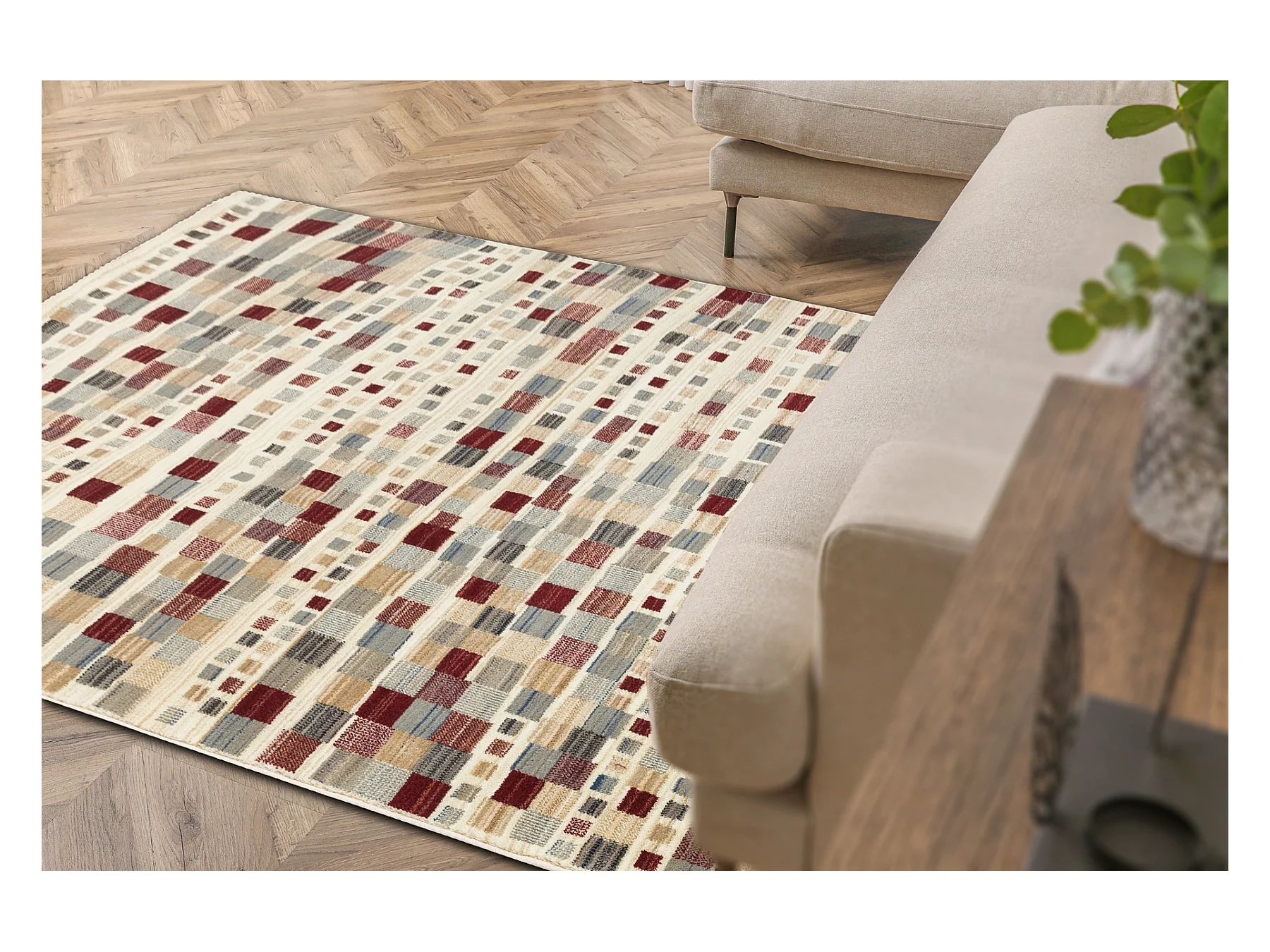 Tapis en laine KILIM 7950/52933 Géométrique beige / gris / bordeaux 200x250 cm