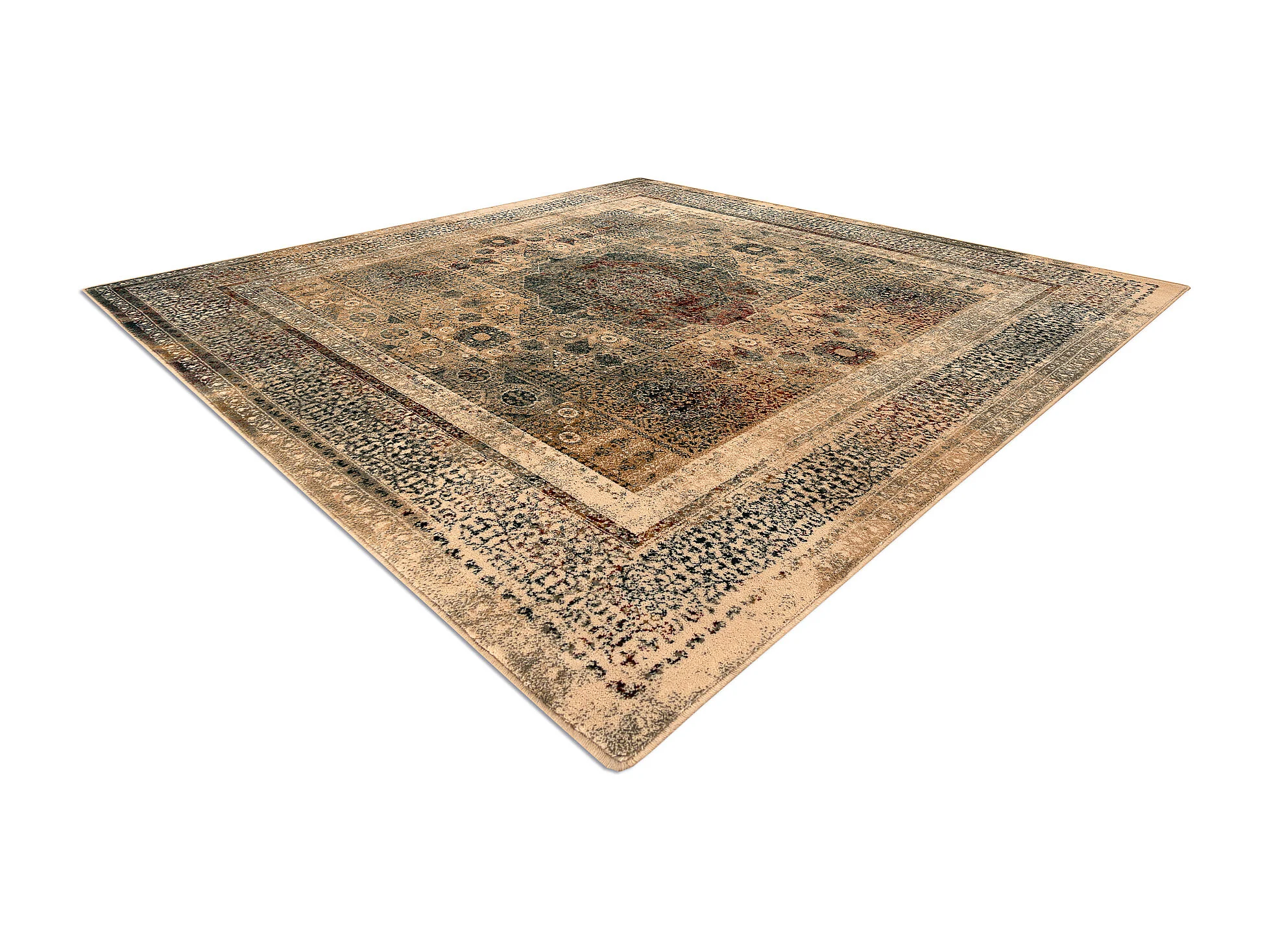Tapis en laine OMEGA MAMLUK Carré Rosette vintage crème 135x135 cm