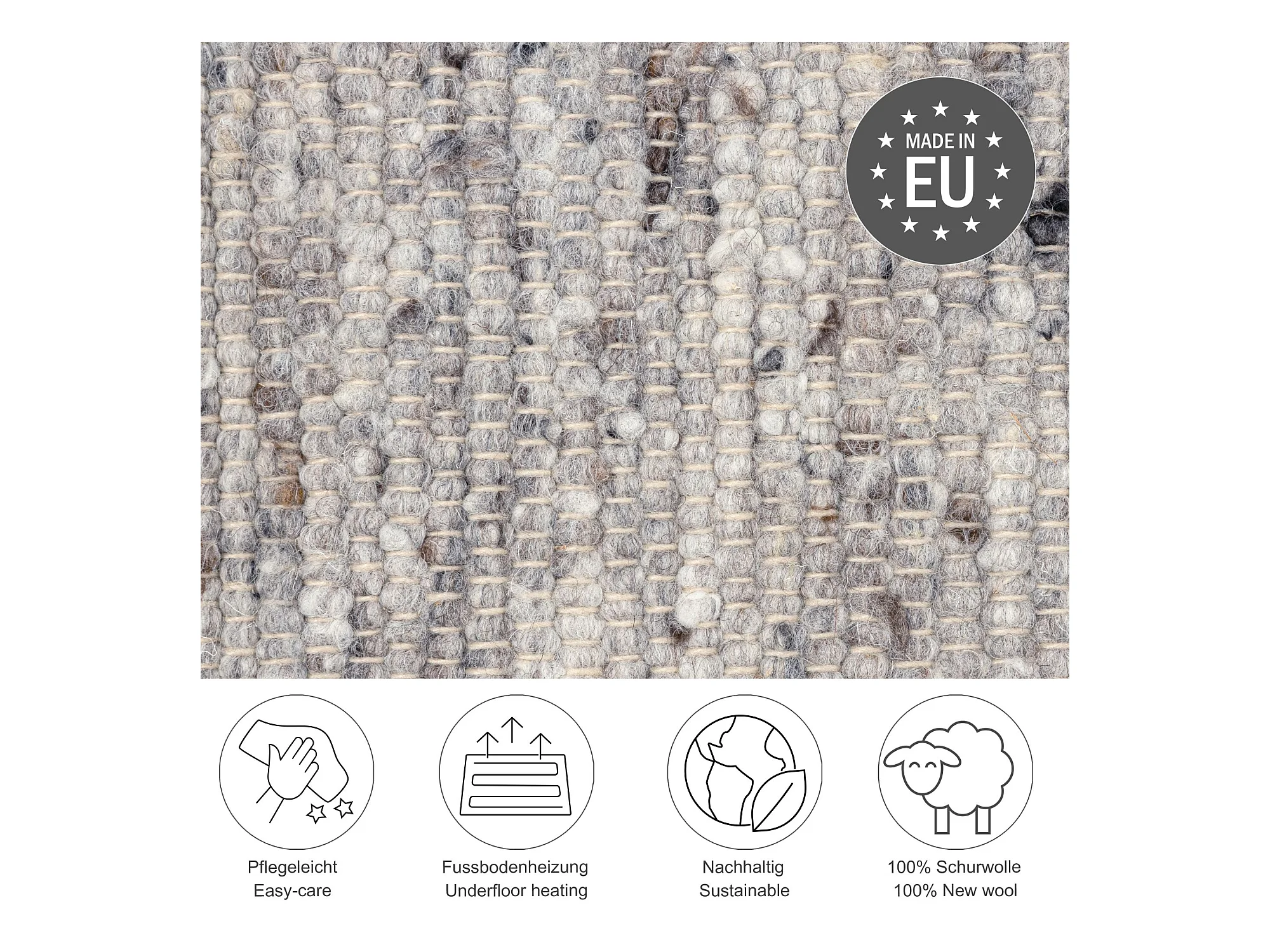 Tapis en laine tissé à la main réversible 90x160 cm gris Alm-Glück