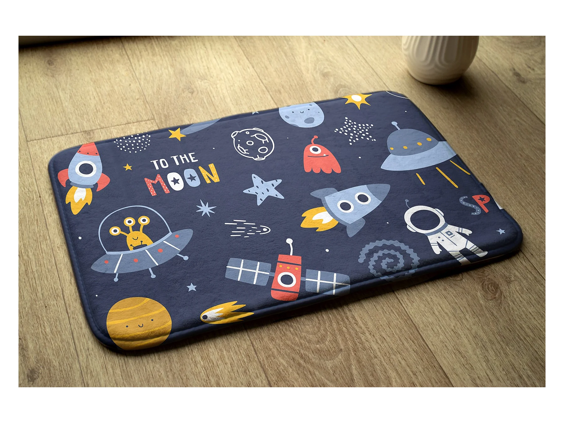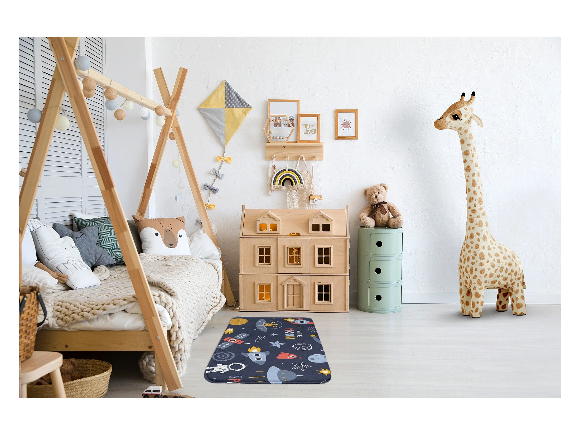 Tapis enfant, 90x60 cm Espace et fusées Tapis enfant, pour une chambre d'enfant