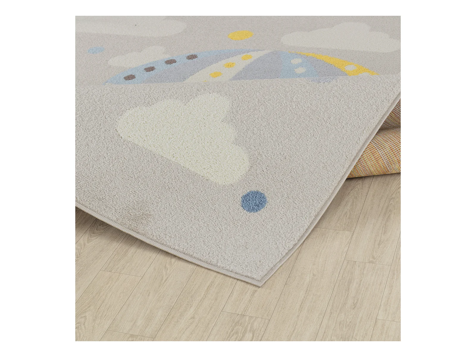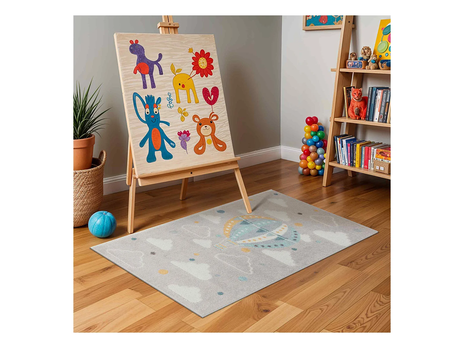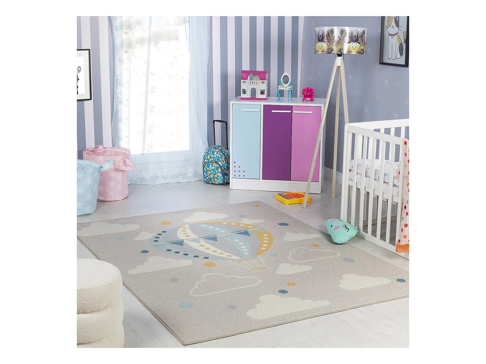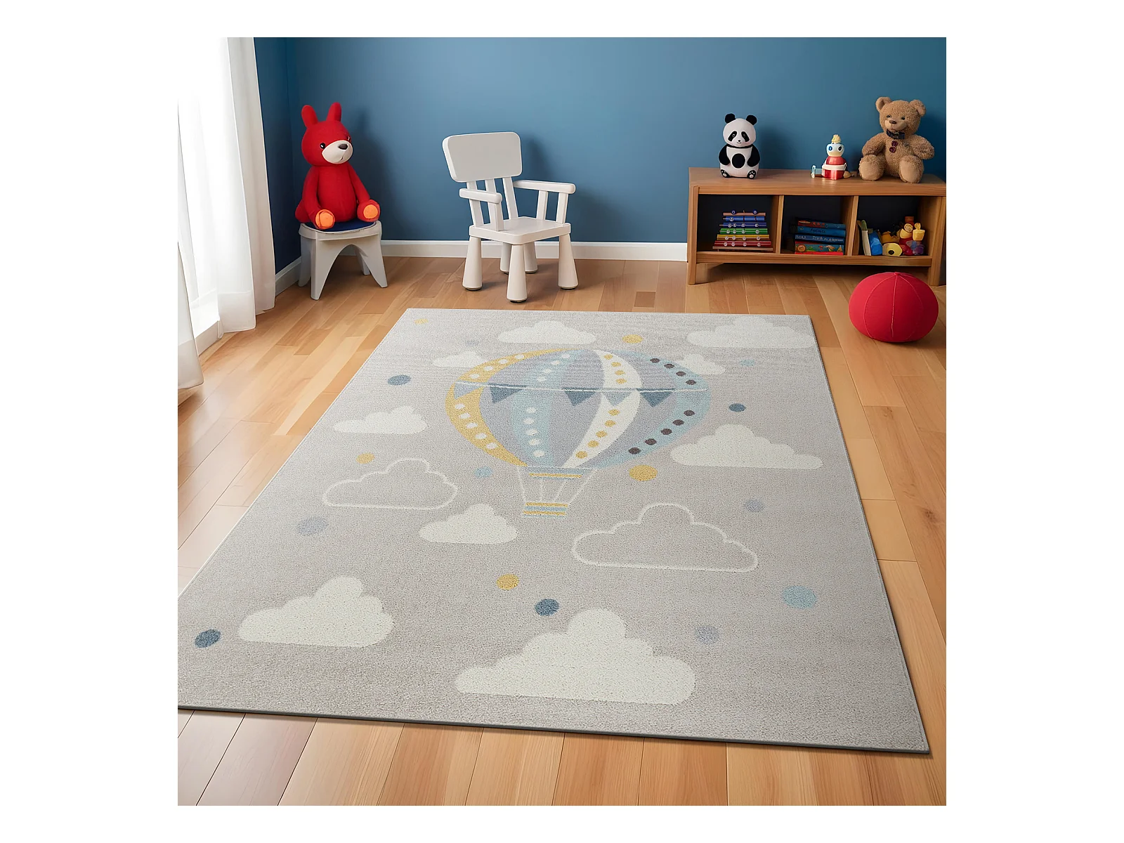 Tapis Enfant Montgolfière Nuages - Multicolore/Gris - 120x170cm - MONTY
