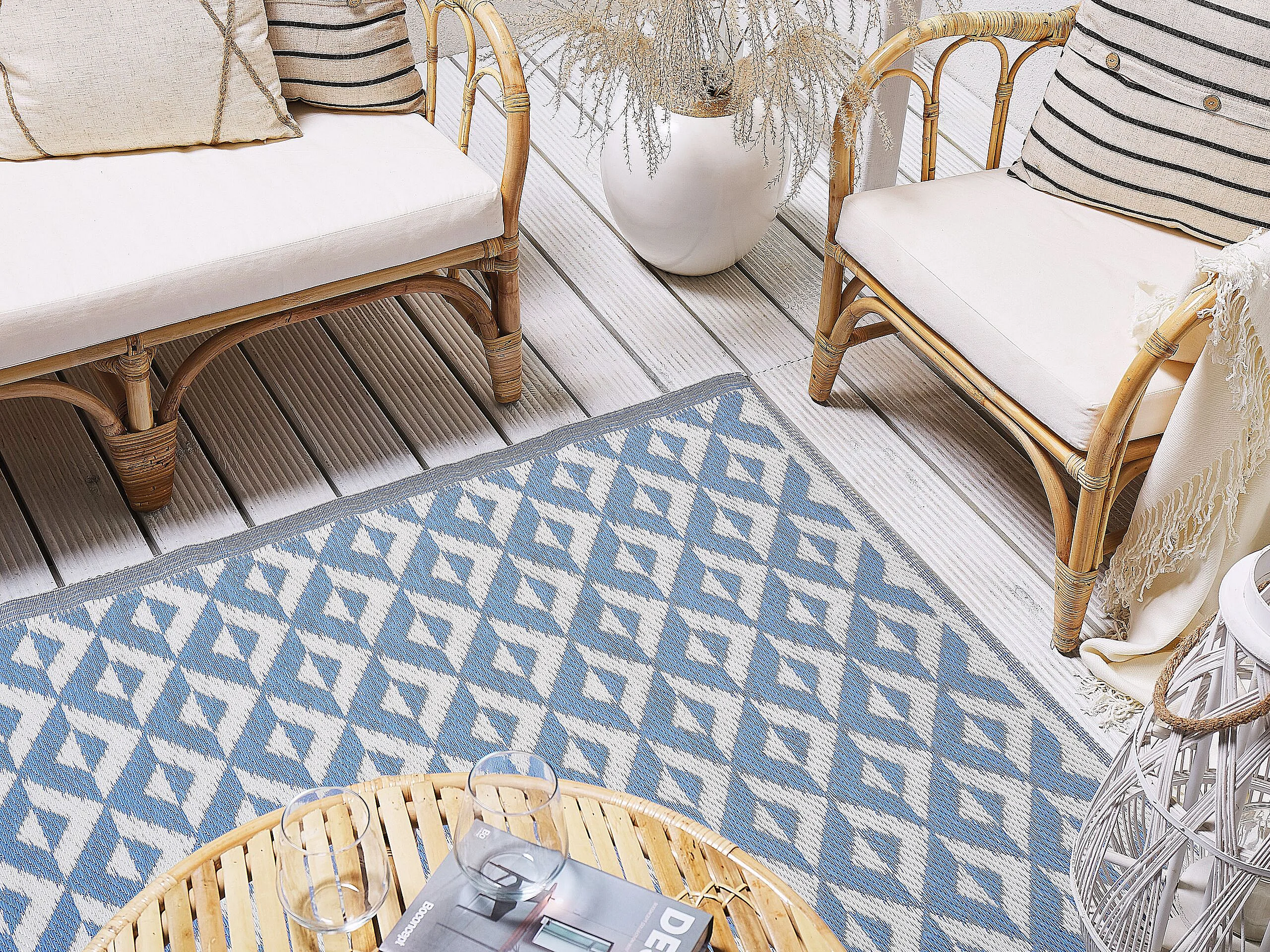 Tapis extérieur au motif géométrique bleu 120 x 180 cm BIHAR