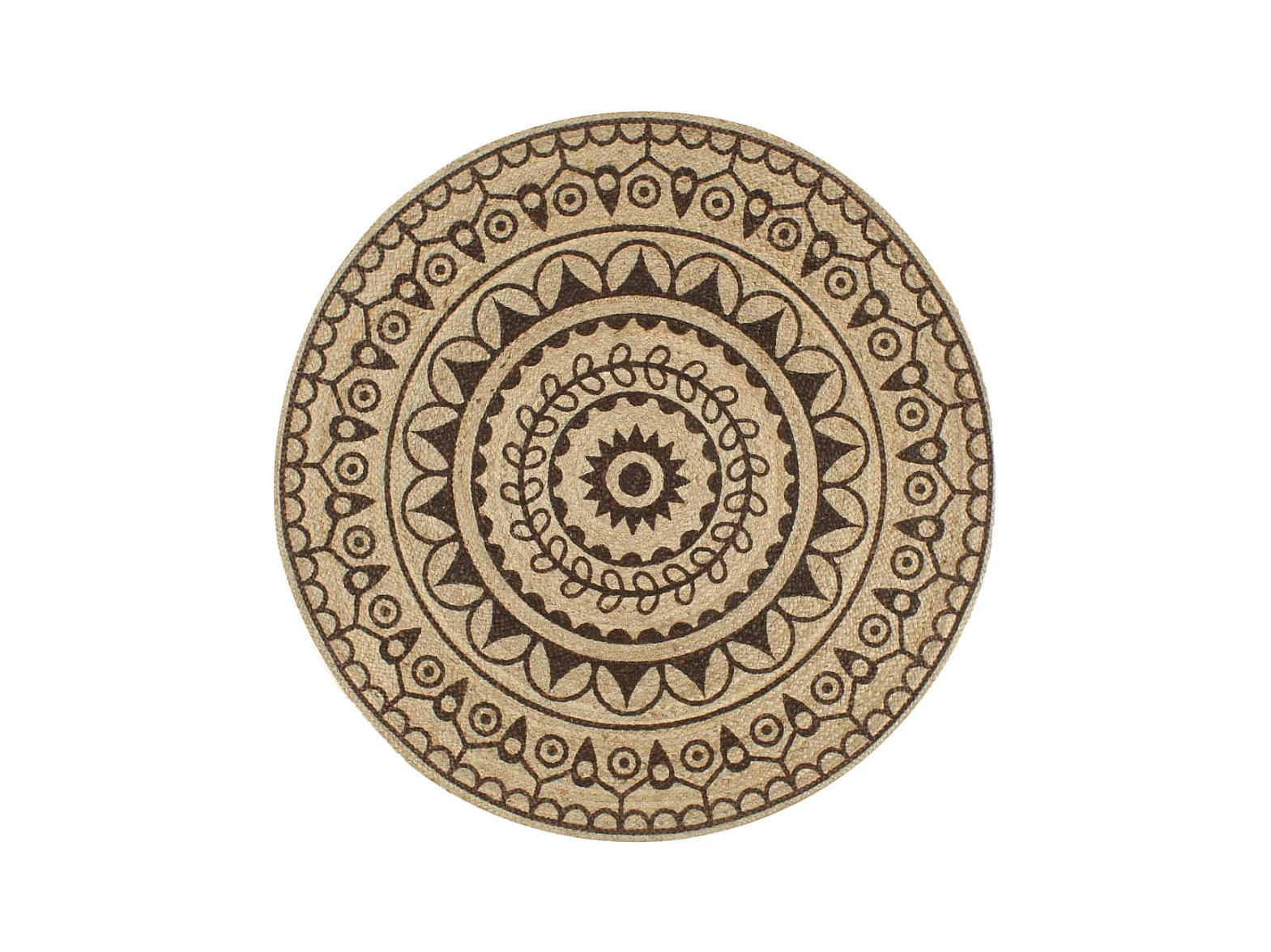 Tapis fait à la main Jute avec imprimé marron foncé 150 cm