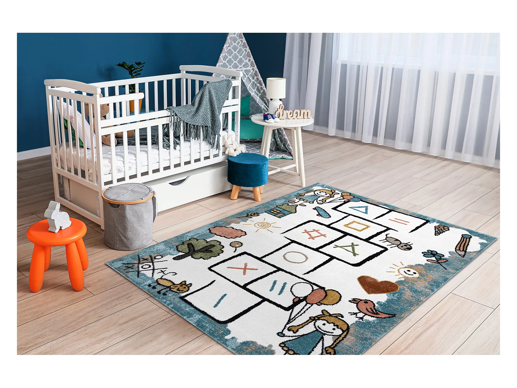 Tapis FUN Hop pour enfants, la marelle, animaux bleu 140x190 cm