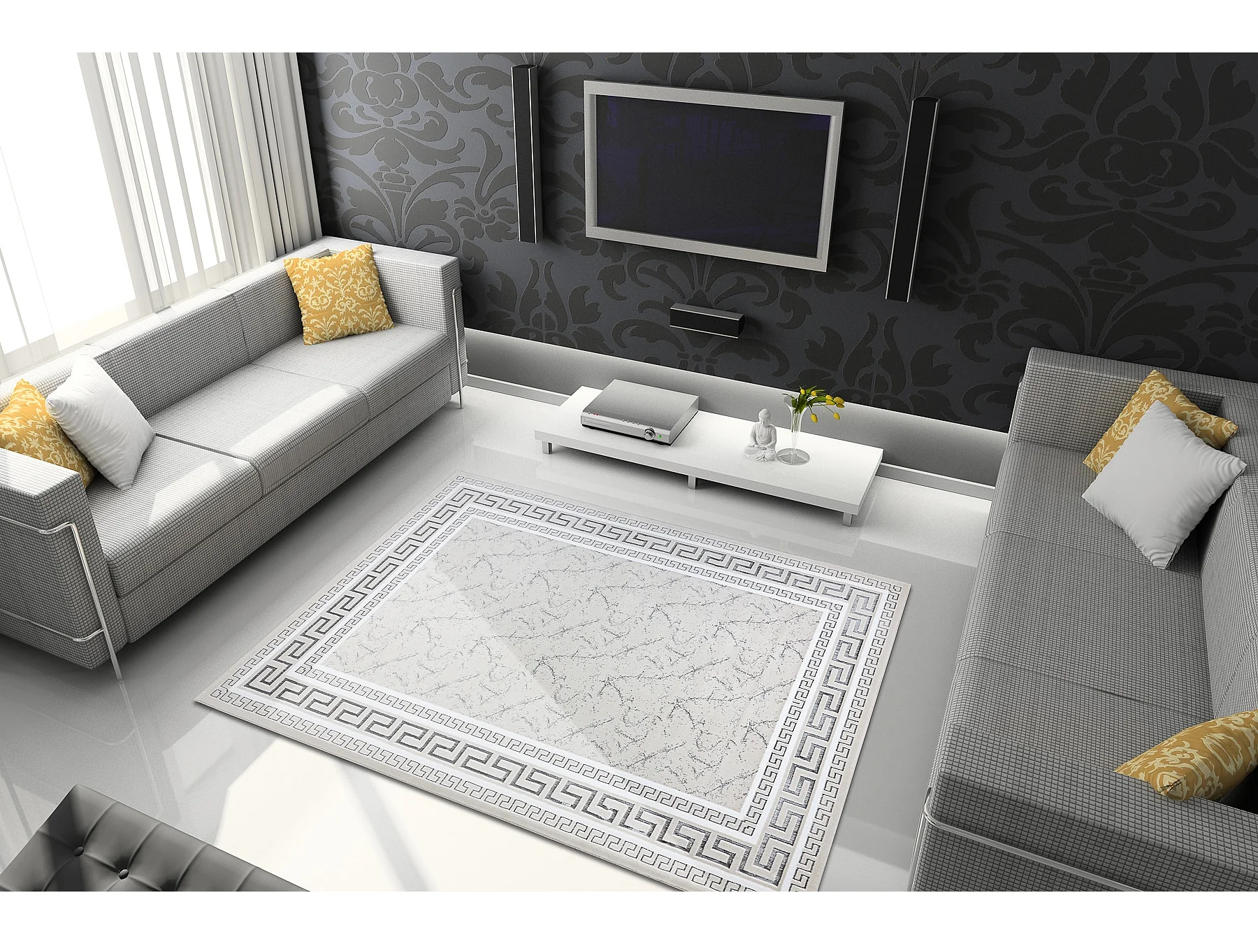 Tapis GLOSS moderne 2813 57 élégant, cadre, grec ivoire / gris 200x290 cm